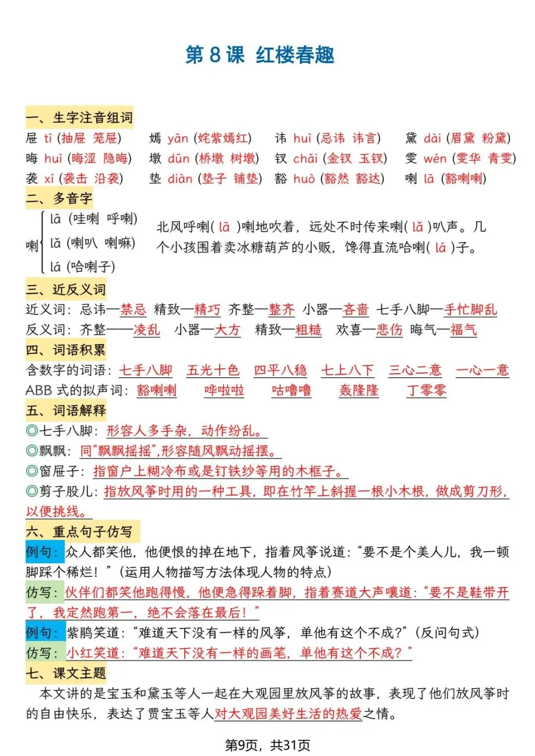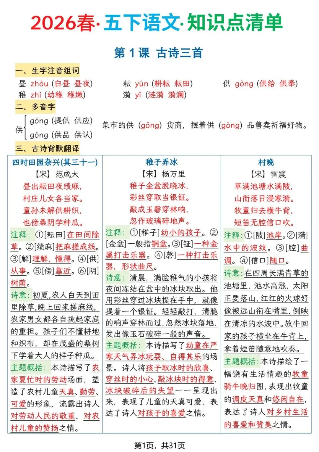 今天给大家分享的是:五年级(下)语文《知识点清单》,共31页,电子版可下载打印。文章末尾可直接领取全套电子版,无套路,欢迎收藏和下载。如果觉得这份资料不错,建议分享到班级群/年级群,让其他家长打印出来,帮助孩子学习;如果觉得合适,请支持正版!