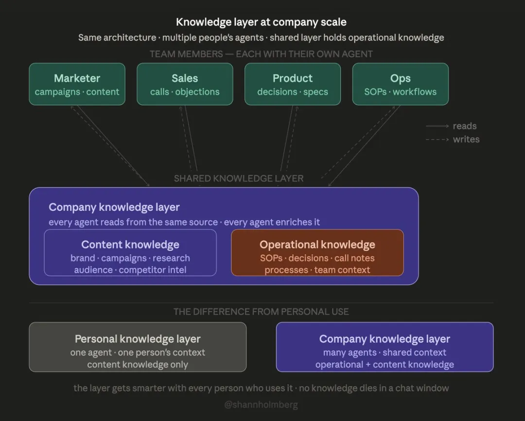在AI日益普及的未来,单纯拥有AI工具将不再具有竞争优势。真正的差异化将来自于你所拥有的私有知识层。这套双层系统——动态的知识库与静态的品牌基础——为每一个追求卓越的智能体提供了生存的土壤。