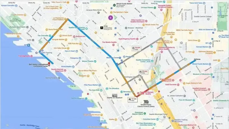 它知道的比你多。你知道怎么去上班,但它知道实时路况和施工信息,并为你规划出最佳路线,帮你绕开拥堵。它知道的比你多。但接下来它做的另一件事,才是关键。就是那些灰色的线。
