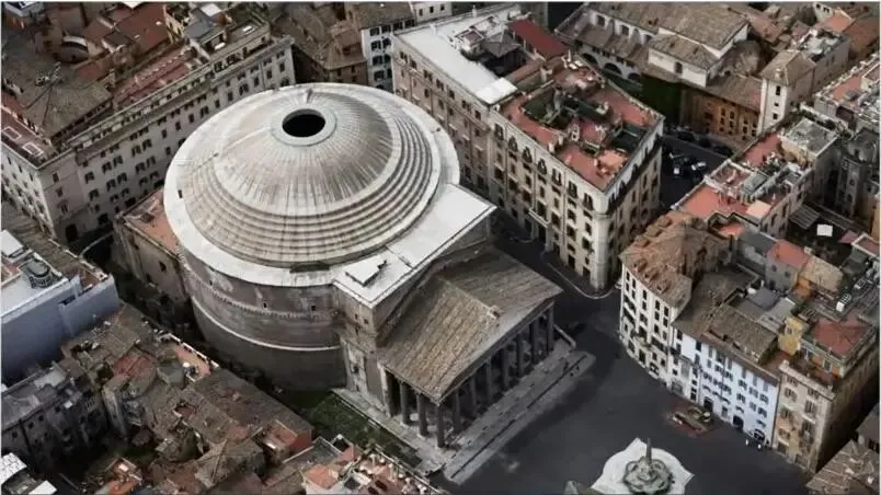 这个东西很有意思。它叫万神殿。在罗马屹立了两千年了。它由无钢筋混凝土建成,而且还处在地震带上。我们至今不知道他们是怎么做到的。就好像是罗马人建好了万神殿,然后在庆功派对上喝得酩酊大醉,第二天就把怎么做水泥给忘了。