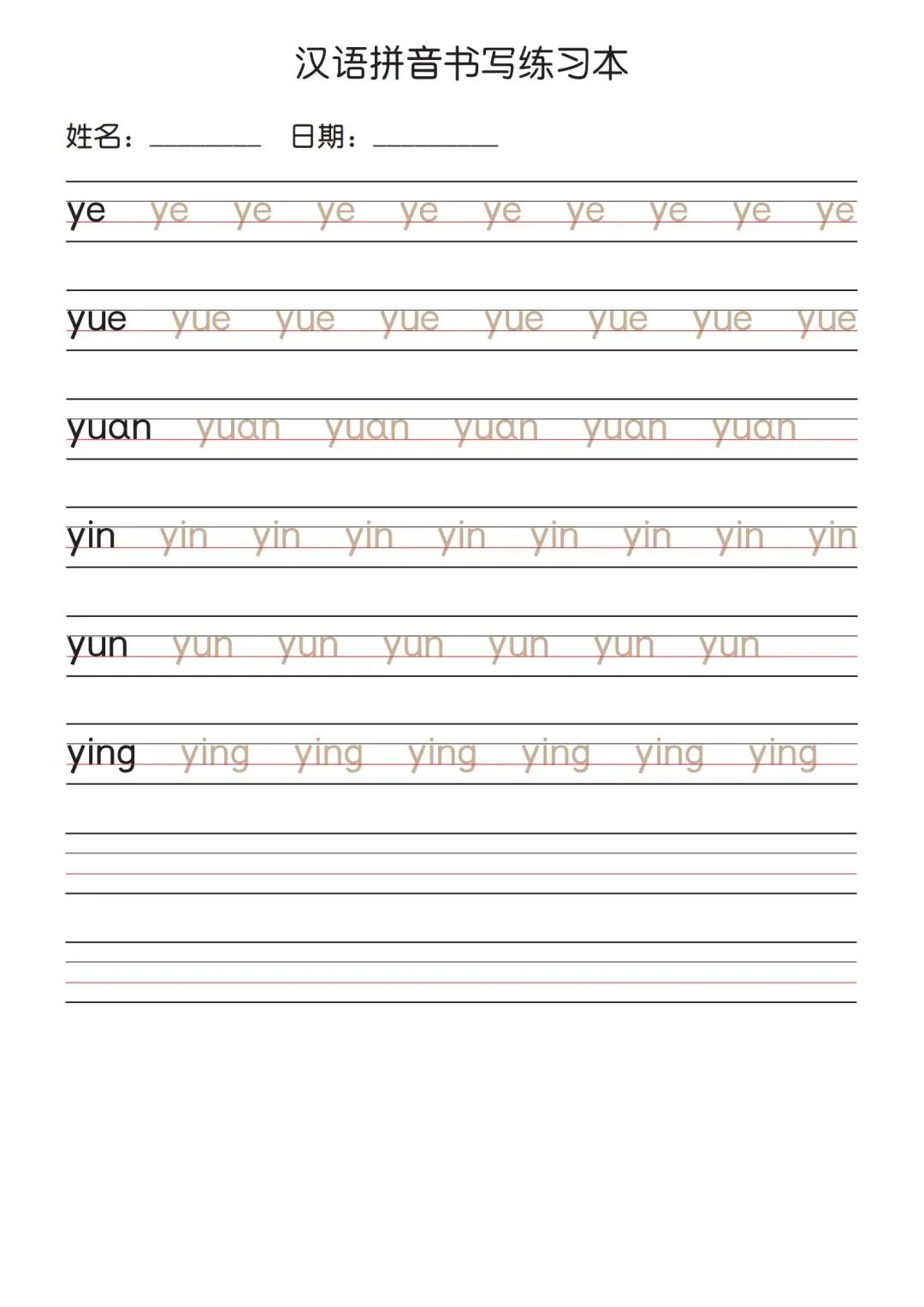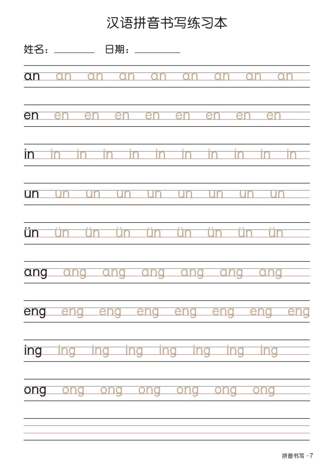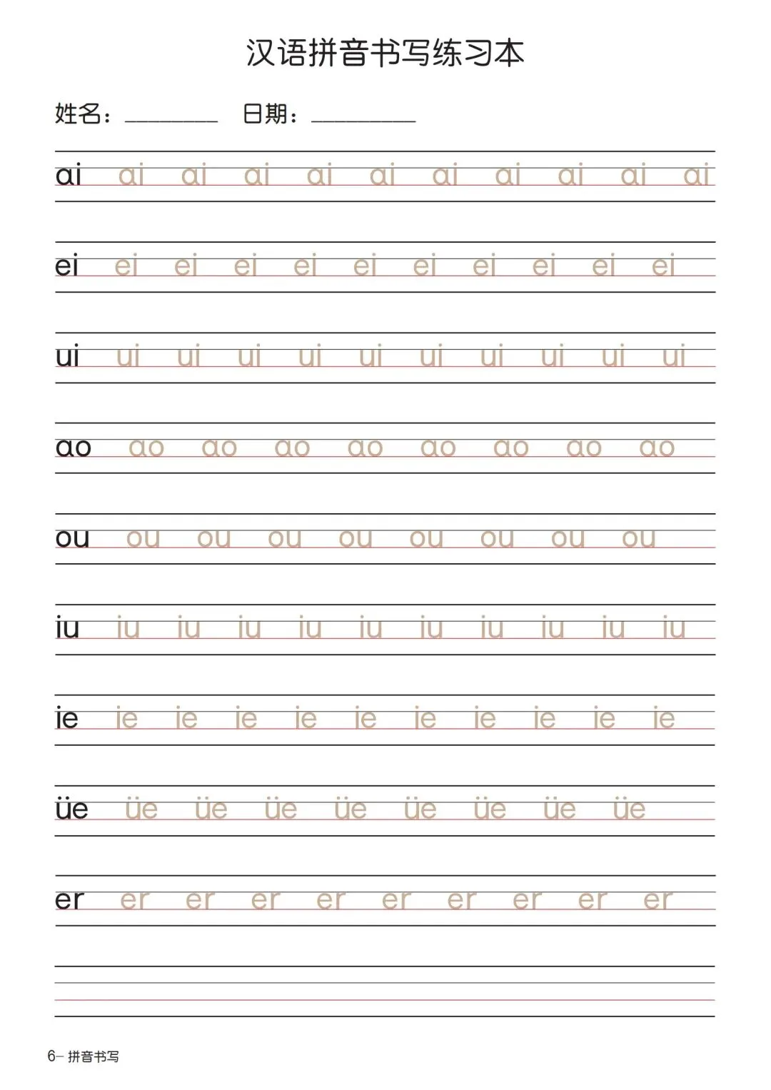 《幼小衔接汉语拼音书写练习本》电子版可打印