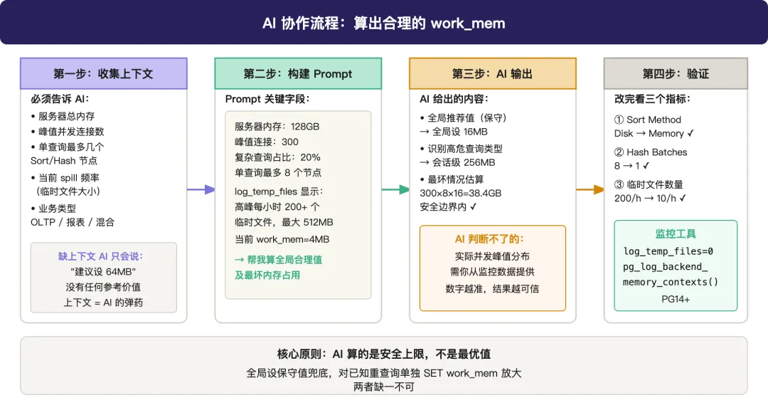 AI 会给你:全局推荐值(通常 8-32MB 区间)、最坏情况内存占用验算、需要单独处理的重查询类型。