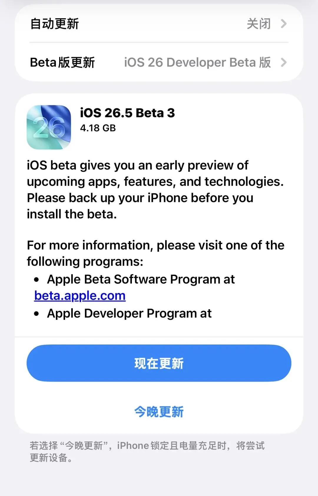 · 主力机/正式版养老党 (iPhone 15及更早):绝对不要碰。Beta 3 仍是测试版,有未知的发热和续航波动风险,且降级麻烦。