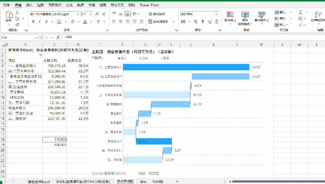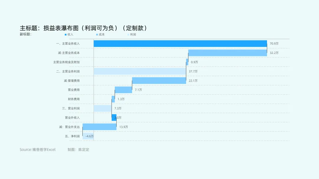 条形水平损益表瀑布图|猪爸爸学Excel|财务图表(定制款)