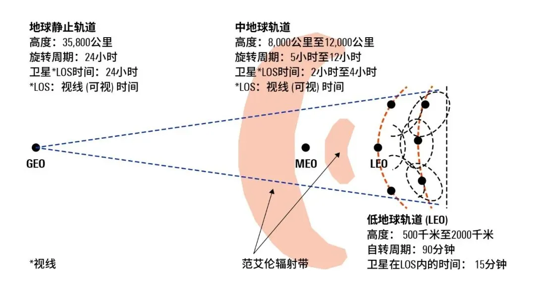 以低轨卫星巨型星座为代表的商业航天正在全球范围重塑移动通信、遥感等多个行业,航天工业正在经历重大变革。我国在“十五五”规划明确将商业航天作为战略性新兴支柱产业与新质生产力核心领域,快速出台了多部产业扶持政策,卫星与火箭产业链生态蓬勃发展。这推动了制造业及其支撑领域的更大需求。为确保这些卫星在发射、在轨运行及主动离轨期间的韧性、可靠性与安全操作,全面严格的EMC测试至关重要。卫星在多样化的条件下运行,包括任务时长、极端温度、辐射暴露以及电磁环境,这些因素均受其运行轨道 (如低地球轨道、中地球轨道或地球静止轨道,见下图) 的影响。