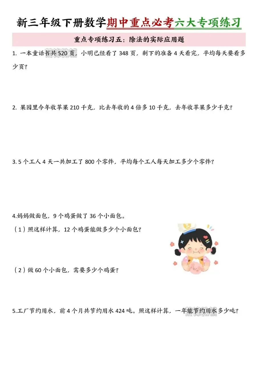三年级下册数学期中重点必考六大专项练习电子版免费领取