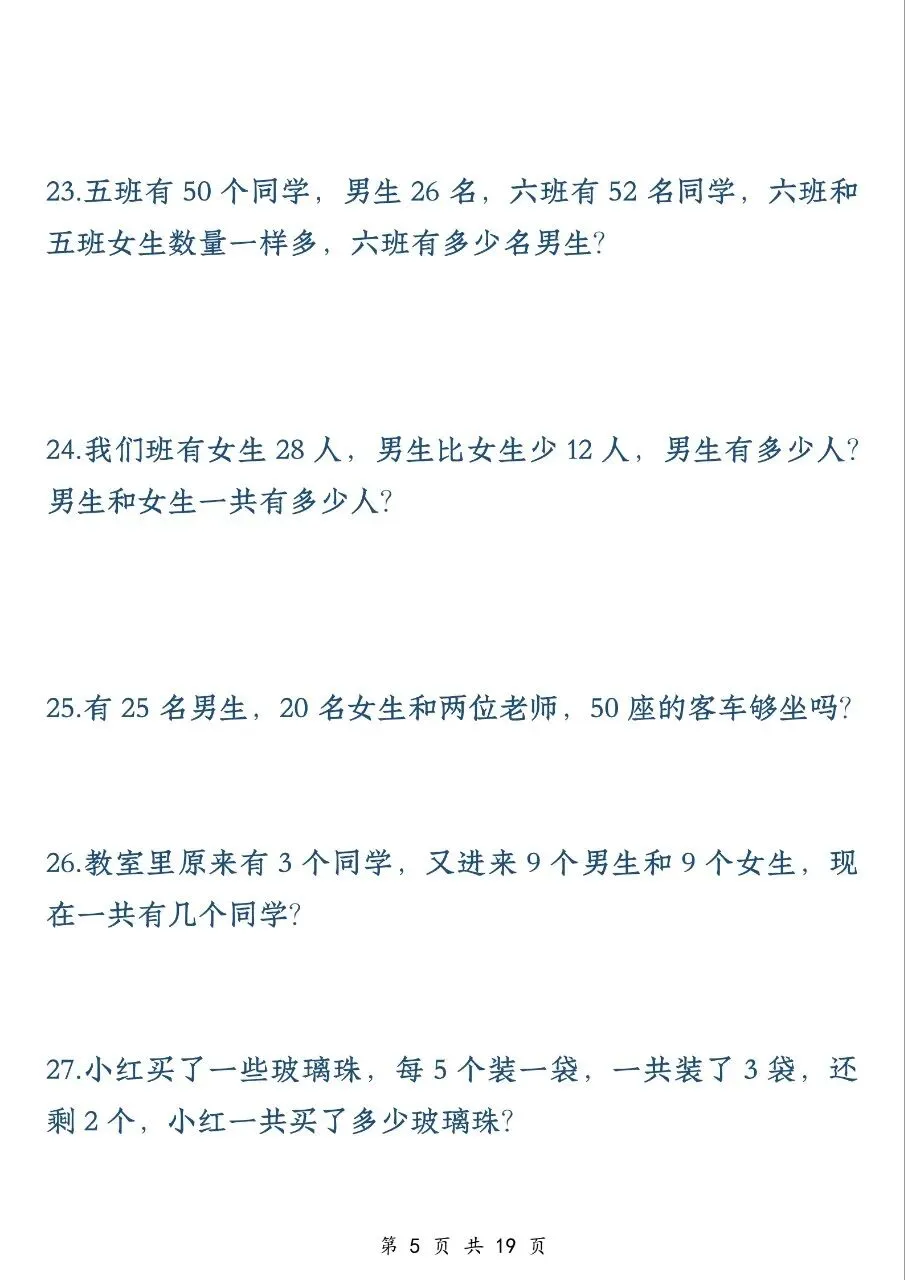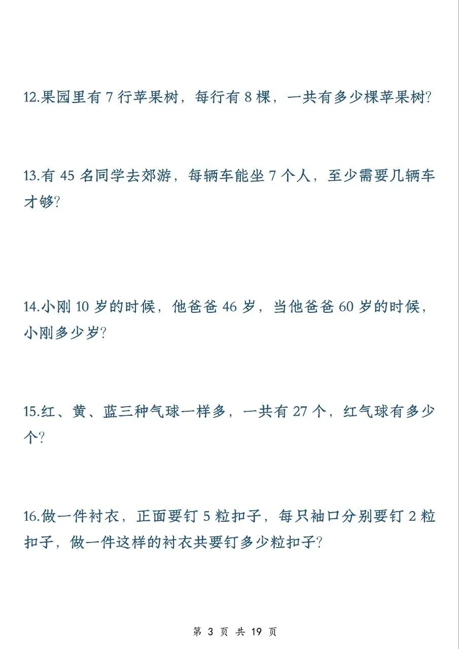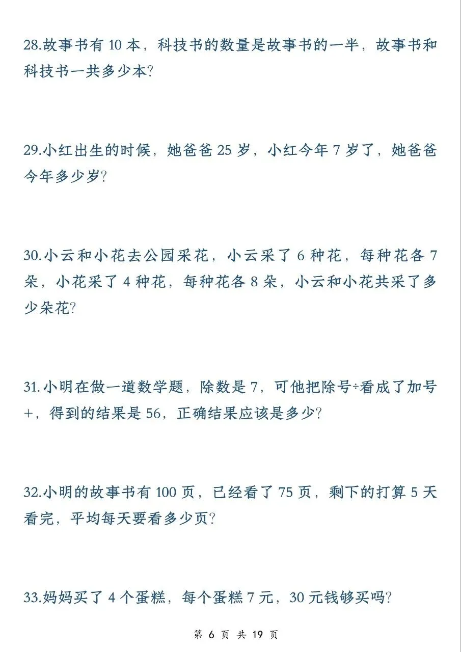 二年级数学下册应用题专项训练(50 题)电子版免费下载!