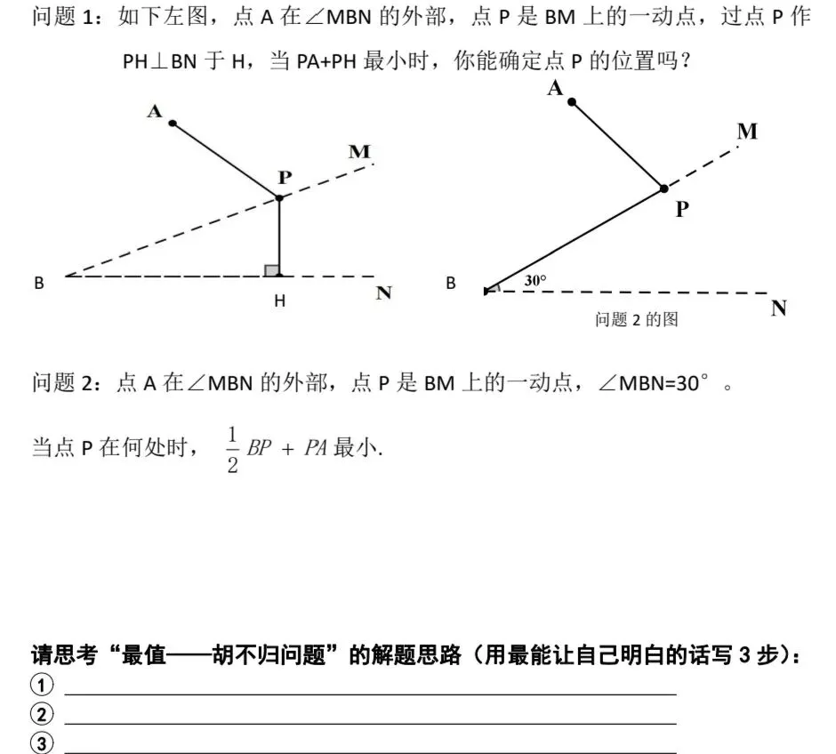 今天分享的是“胡不归”模型——这是一类“带系数的线段和最值”题,核心是把“系数×线段”转化为“某条垂线段”,再用“两点之间线段最短”求最值。