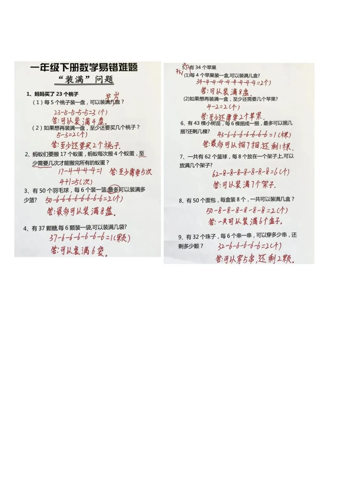 一年级下数学“装满”专项练习 完整高清电子版可打印