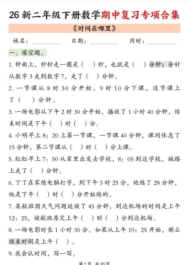 今天给大家整理了26春二年级数学下册期中复习专项合集,转发给朋友或班级群,受益更多人,帮助孩子学习!