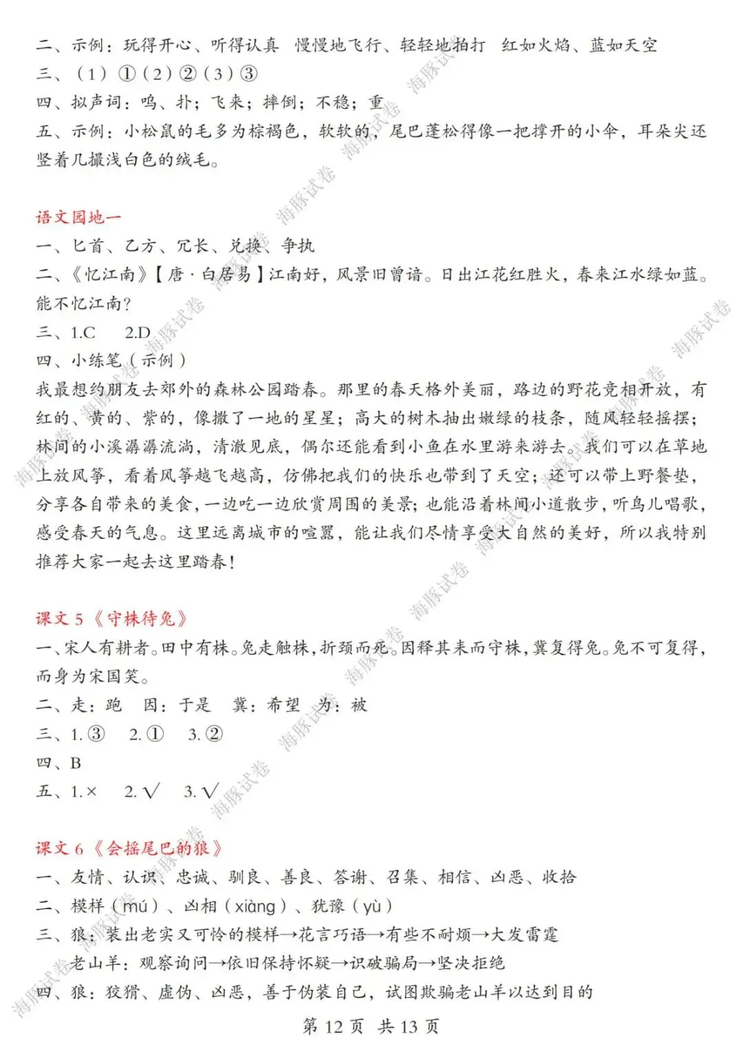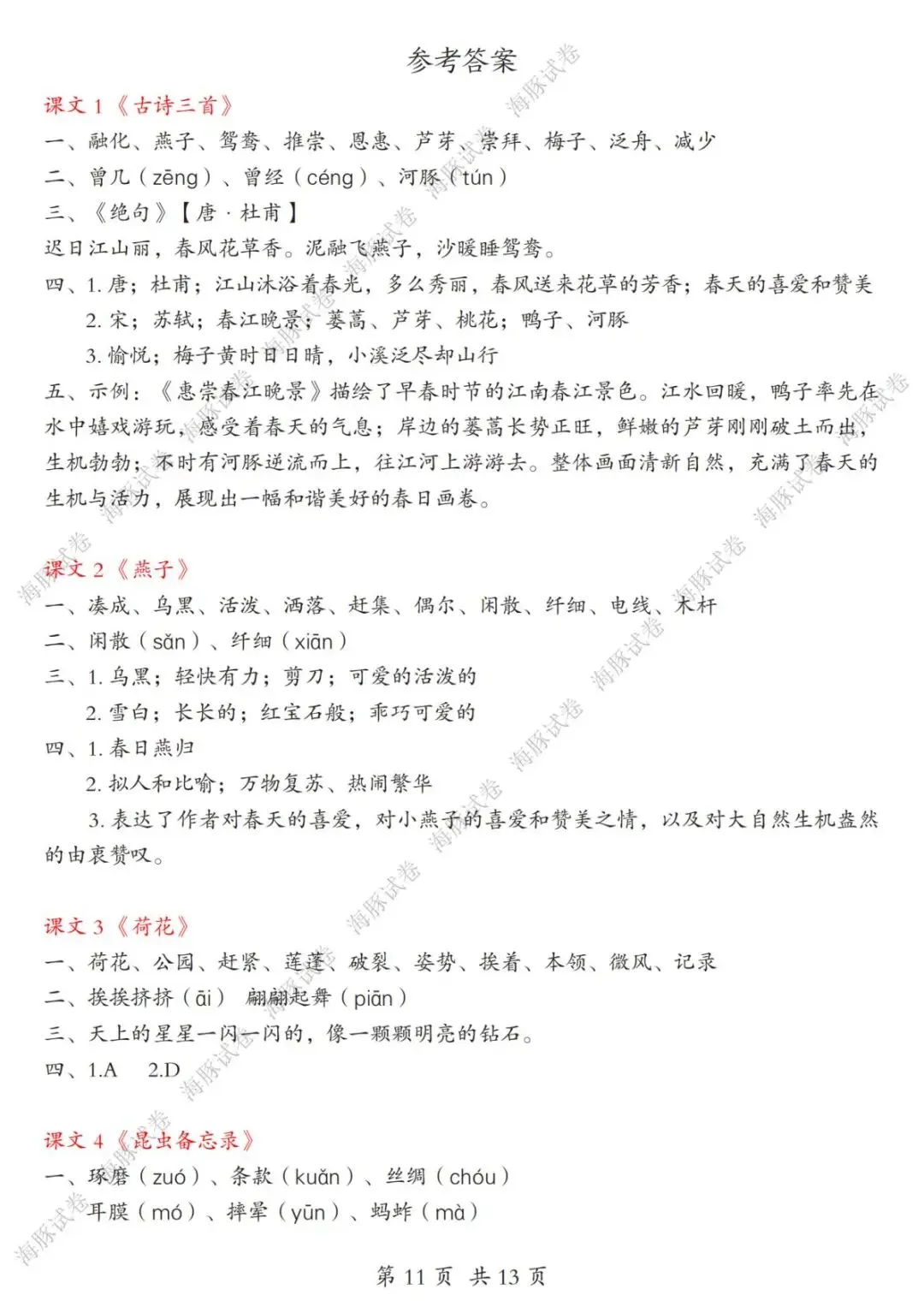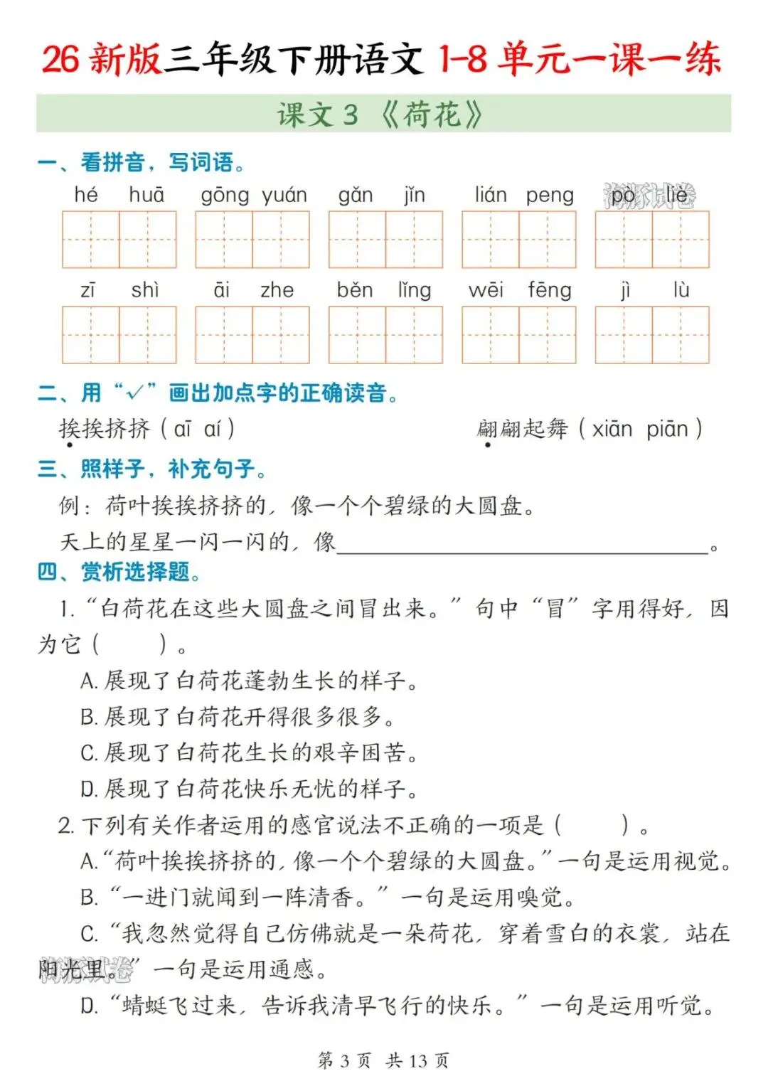 三年级下册语文《1-8单元一课一练》电子版可打印