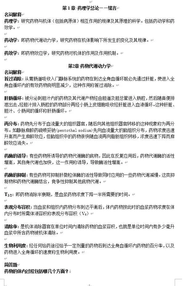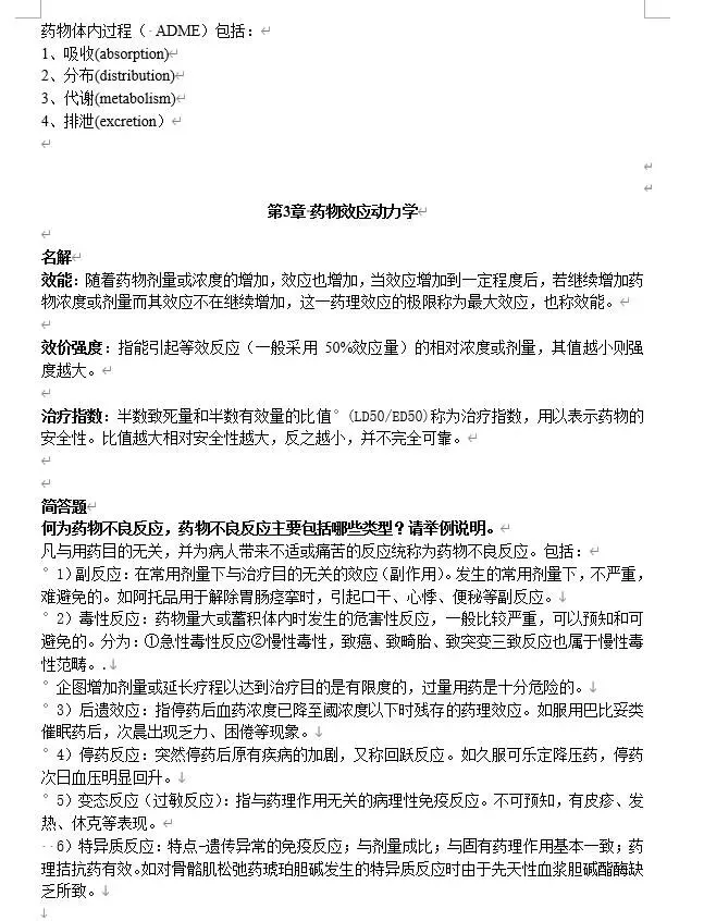 于是我收集好了整套的药理学的期末复习资料的PDF,