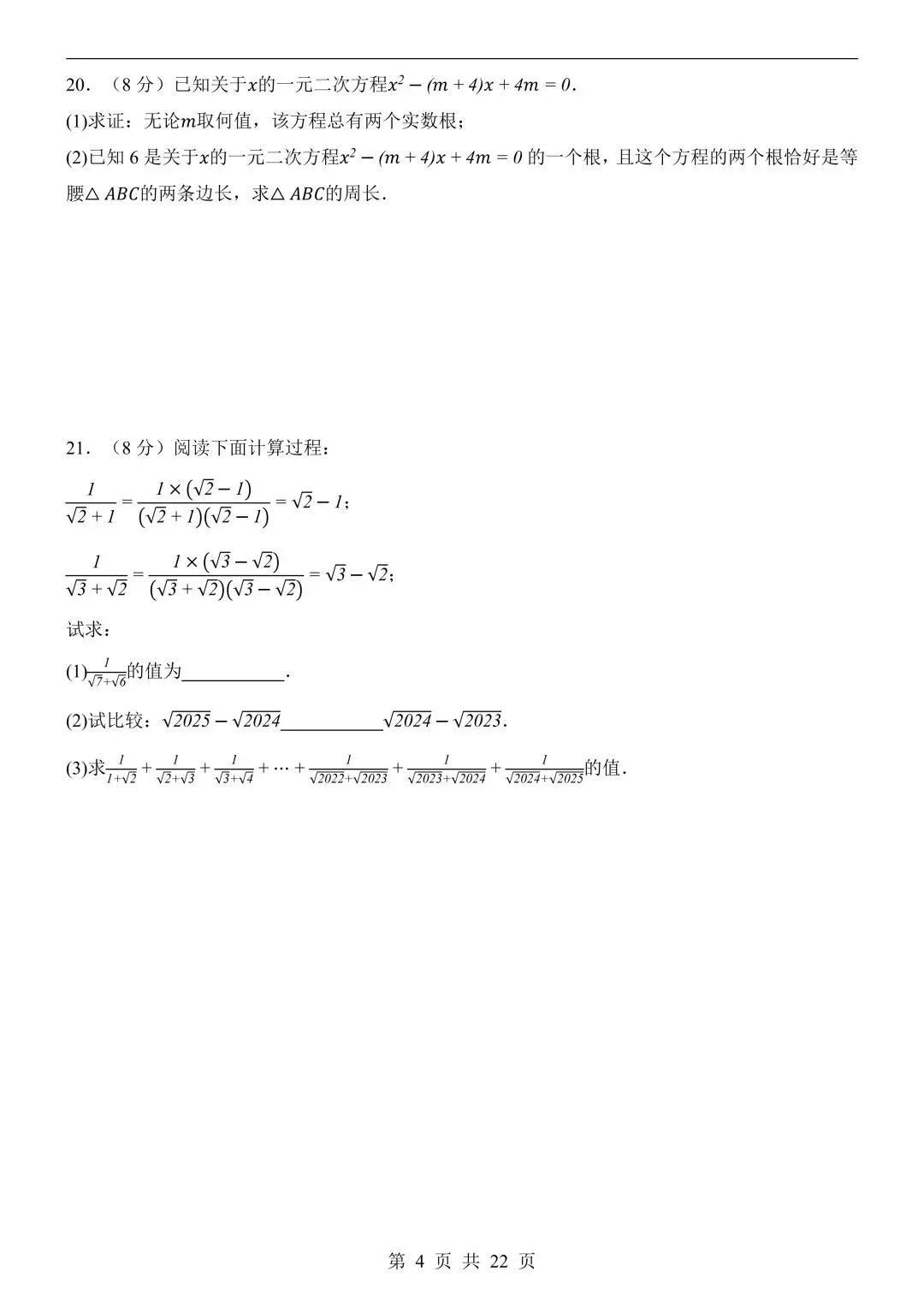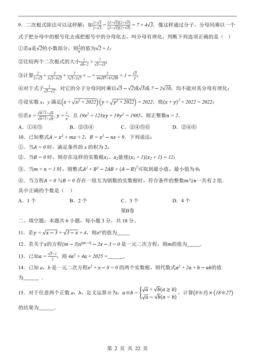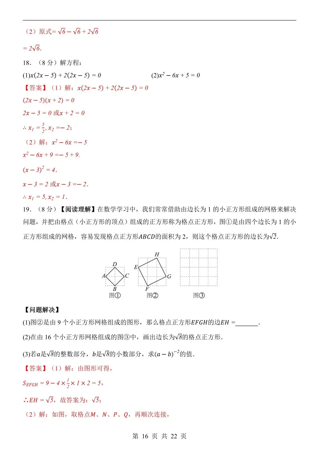 26年春新版八下数学第一次月考卷完整版含答案,电子版可打印!