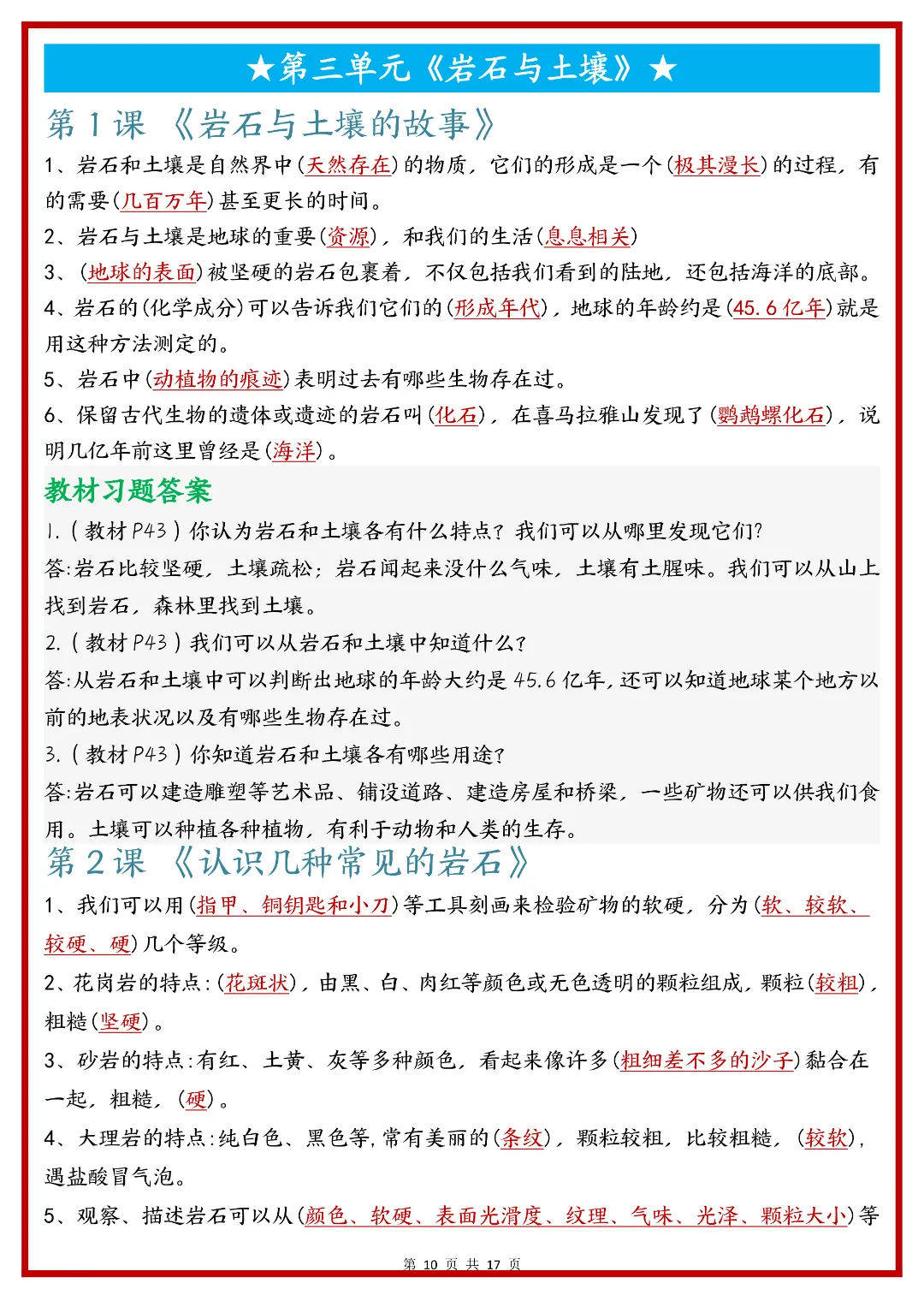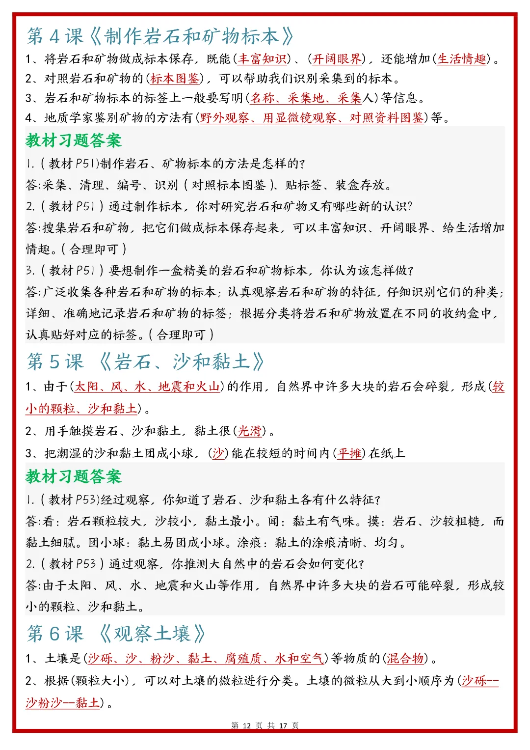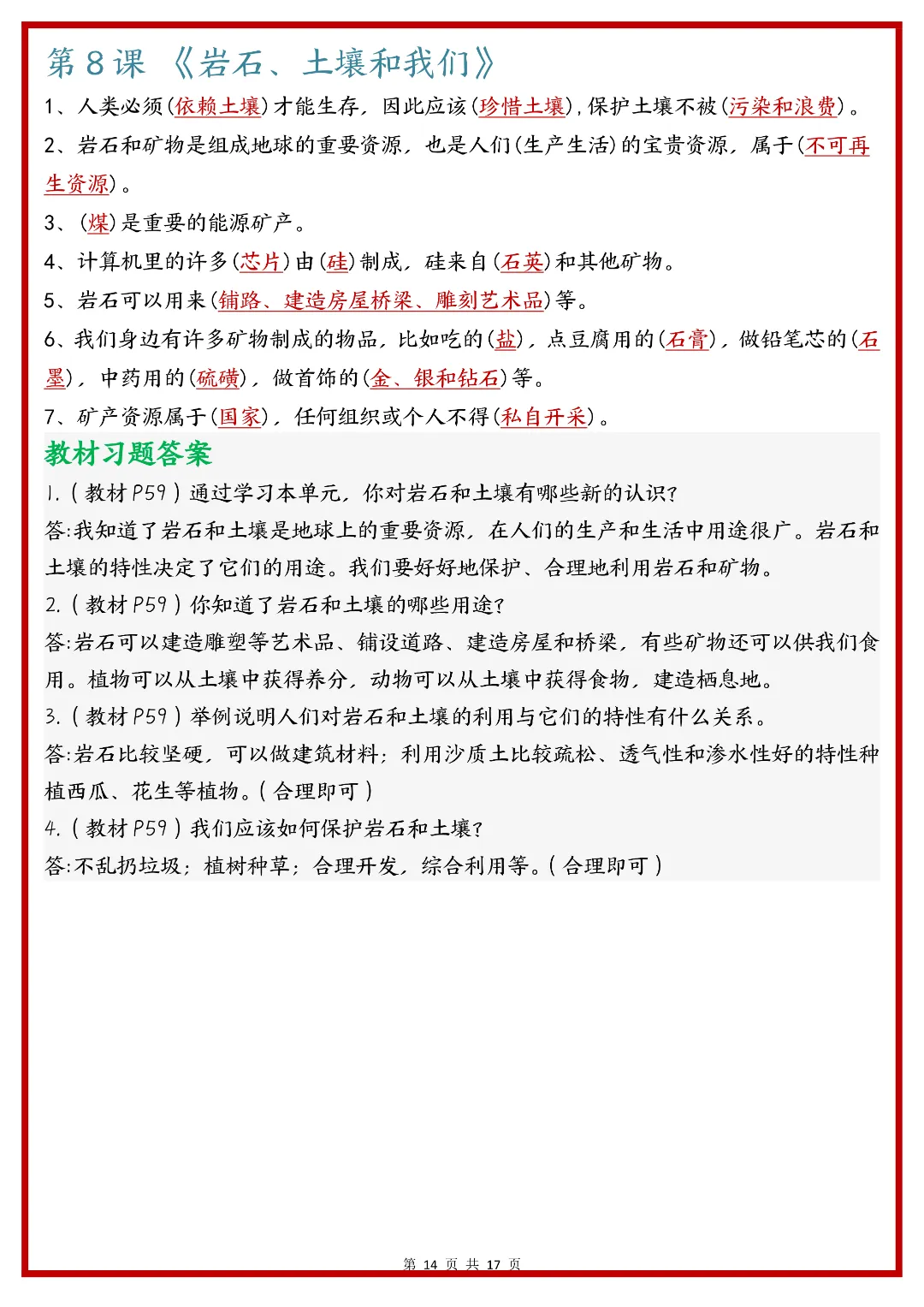 2026年春教科版四年级下册科学《期中复习高频考点汇总》,电子版可下载打印