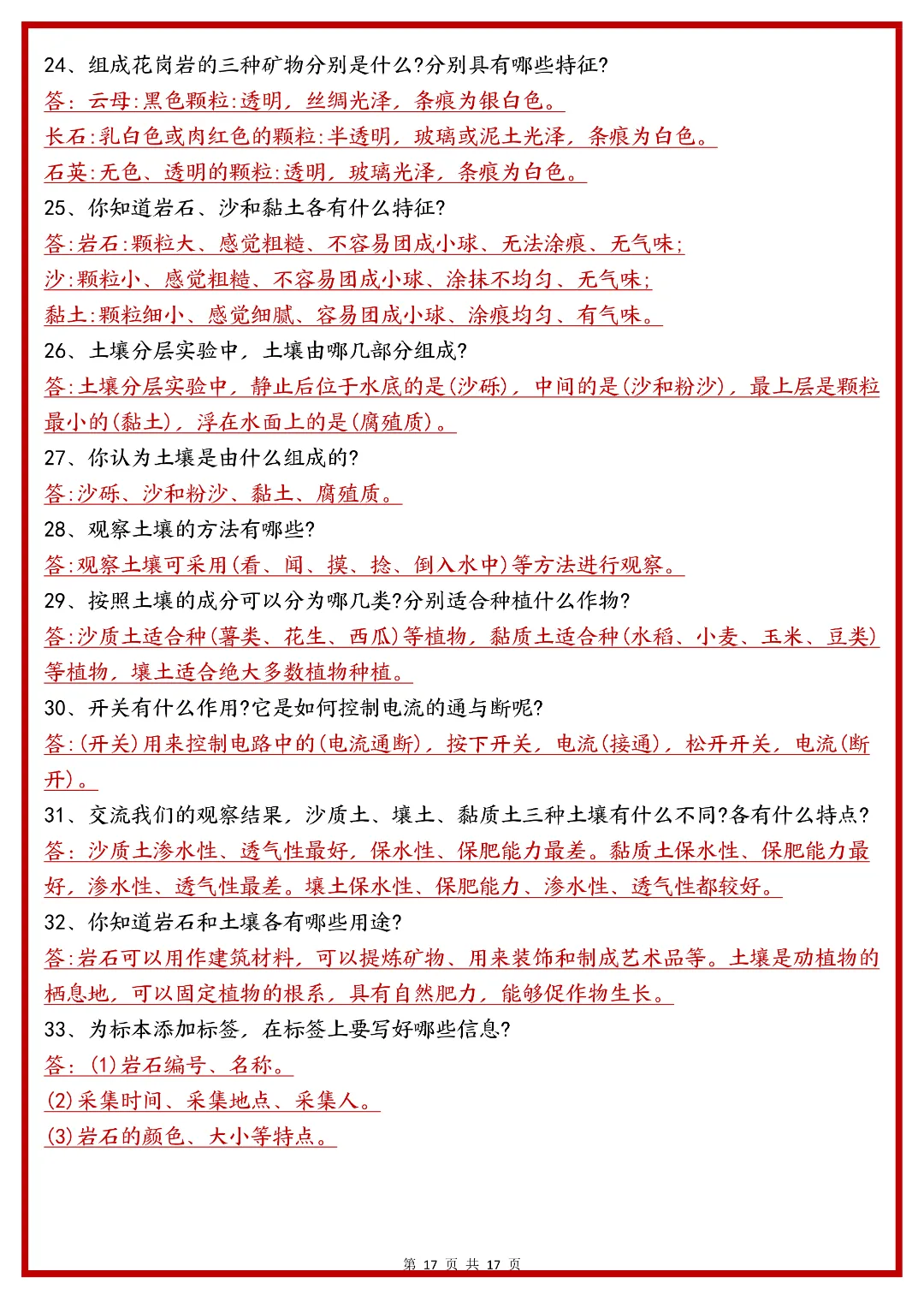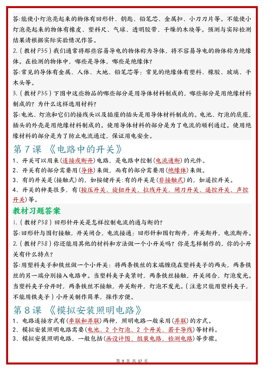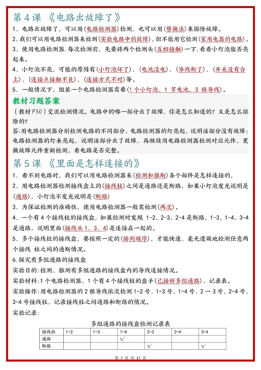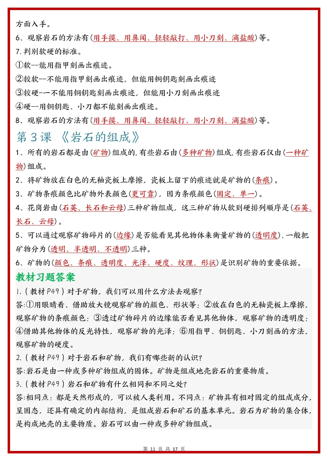 2026年春教科版四年级下册科学《期中复习高频考点汇总》,电子版可下载打印