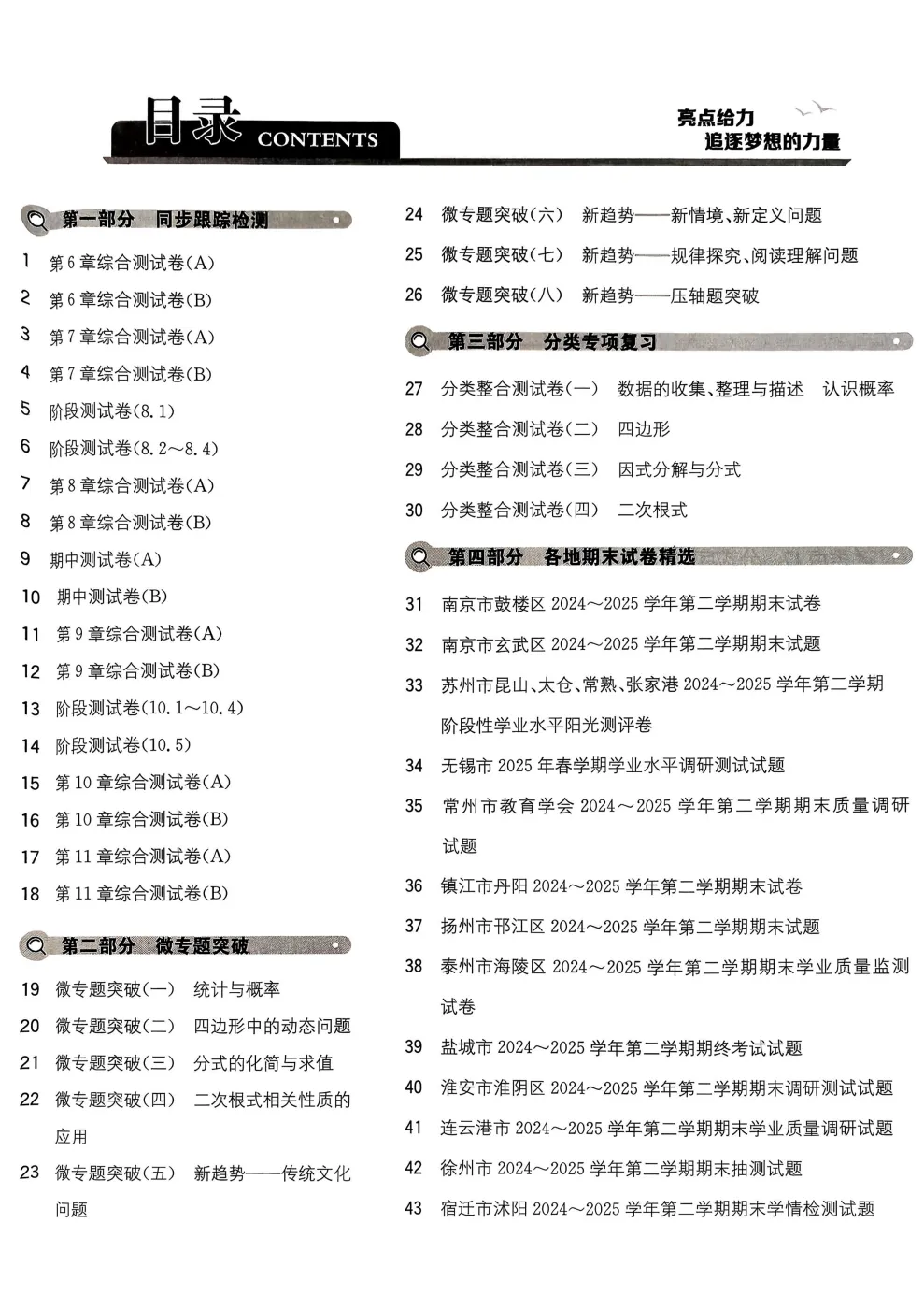 初中七八年级苏科版数学《亮点给力大试卷》含参考答案,同步跟踪检测卷18套,微专题突破卷8套,分类专项复习卷4套,各地期末试卷精选13套。文章末尾有完整电子版领取地址,欢迎收藏和下载。