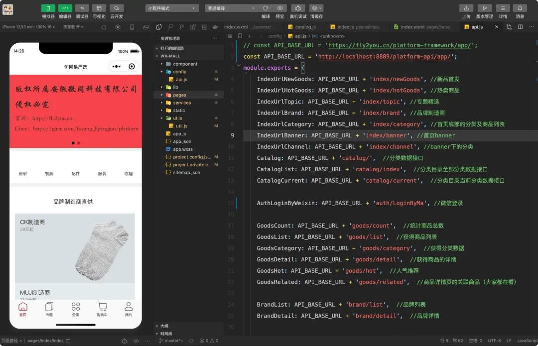 下载源码 拉取后端 + 前端 + 小程序全套源码。 -