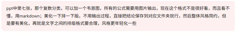 我想让他把复数分类用图表示一下,并且我感觉这个文件太简洁了,也不吸引人,于是我又提出了以下要求。