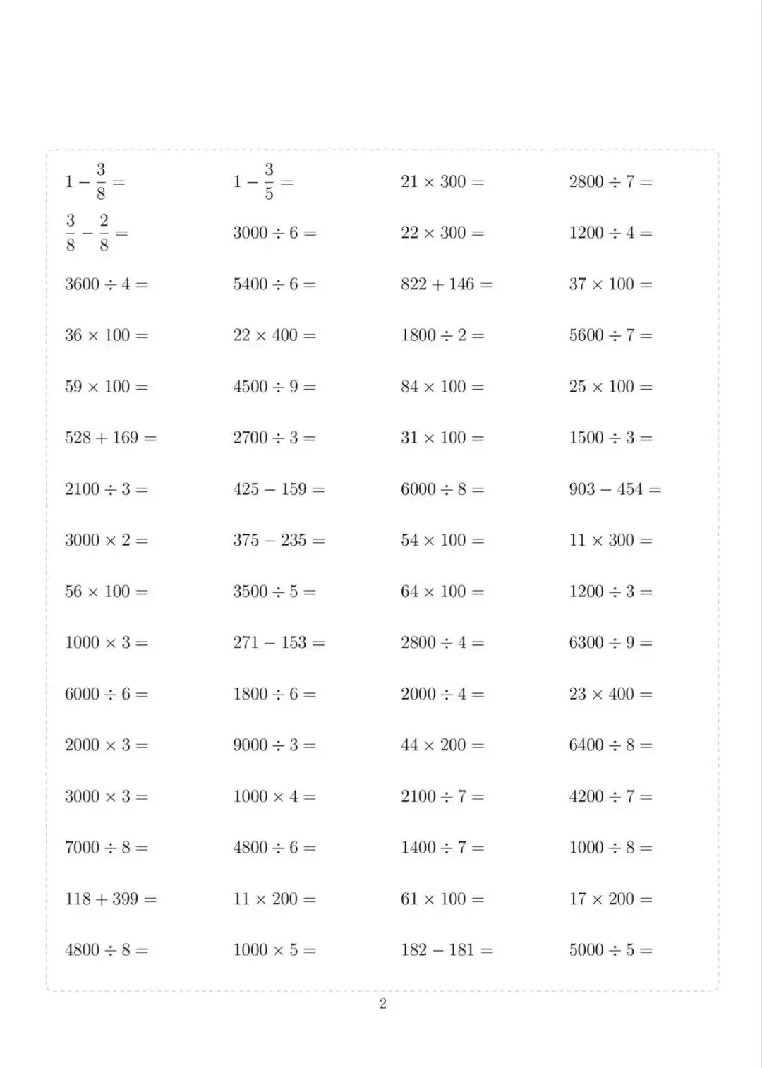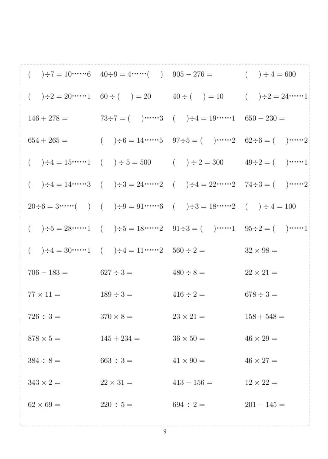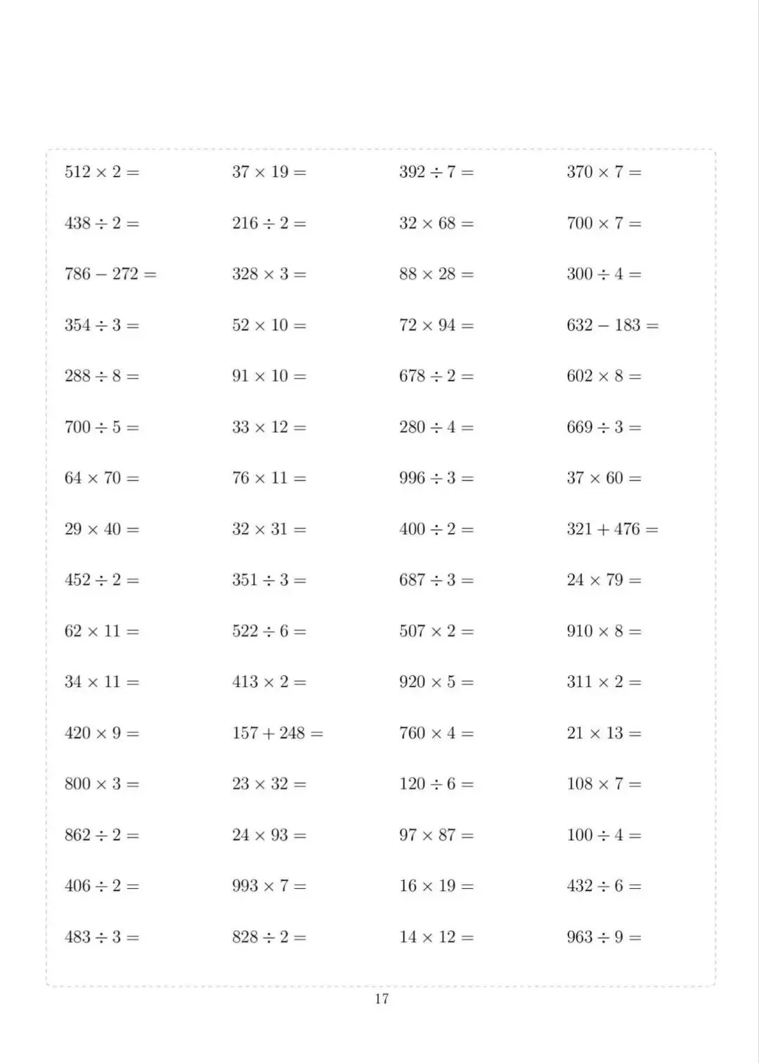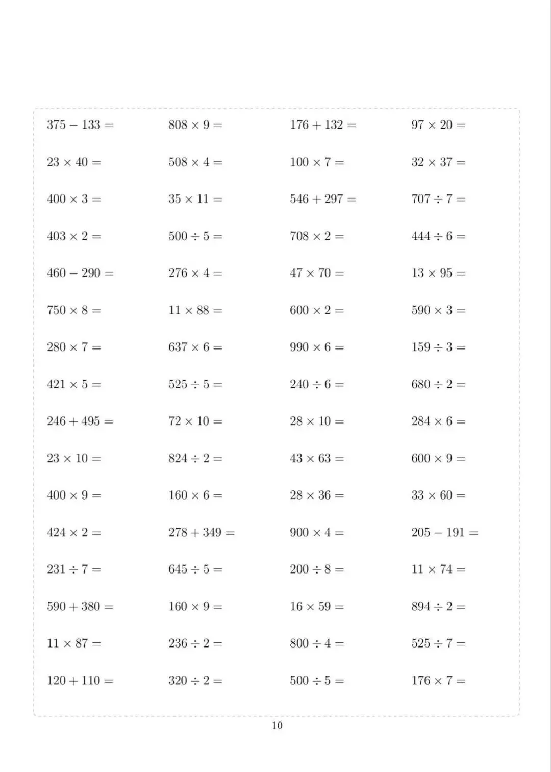 三年级下册数学计算专项练习,电子版可下载打印