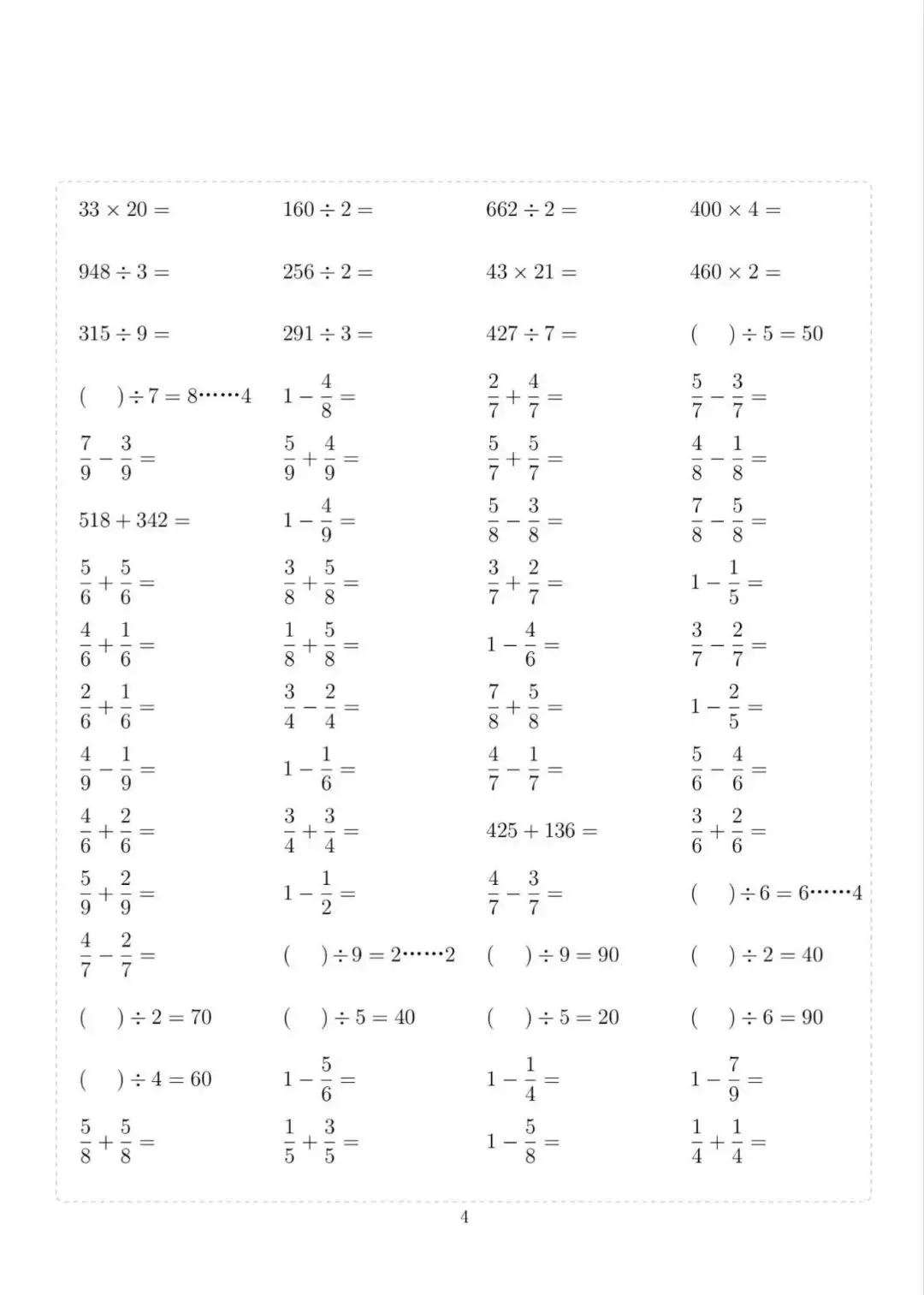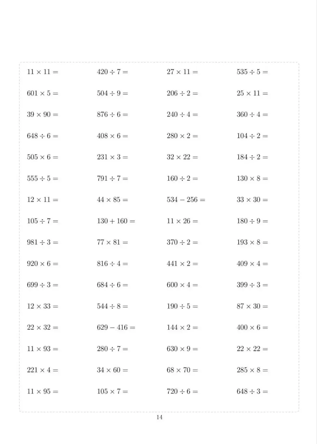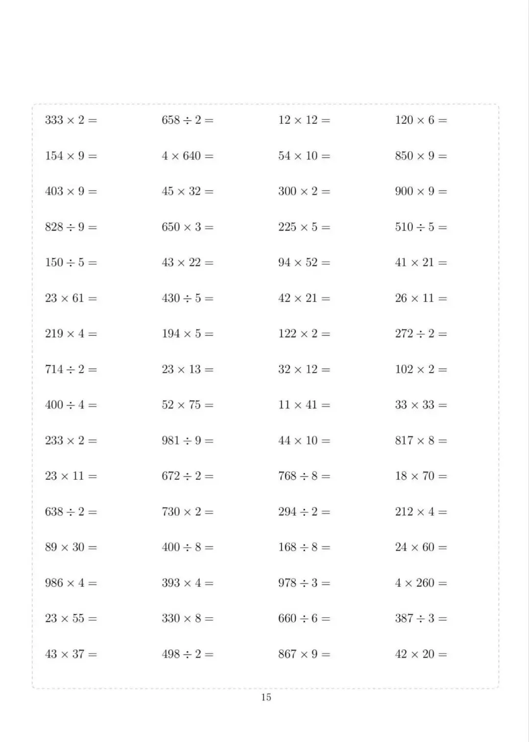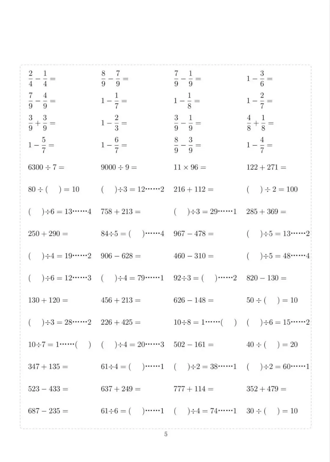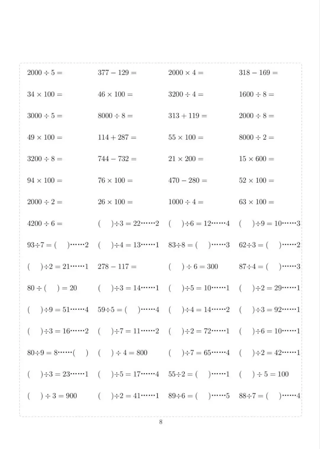 三年级下册数学计算专项练习,电子版可下载打印