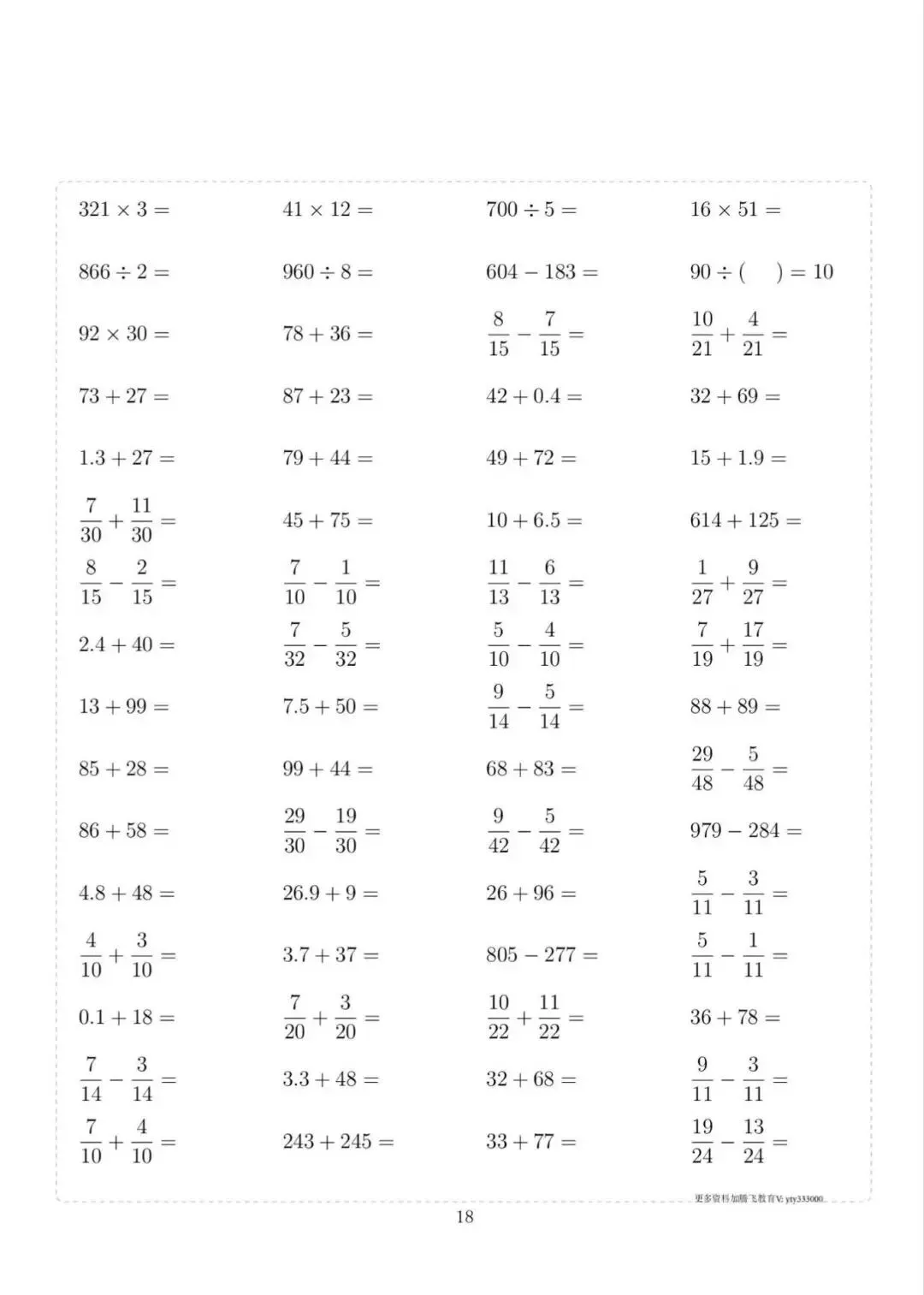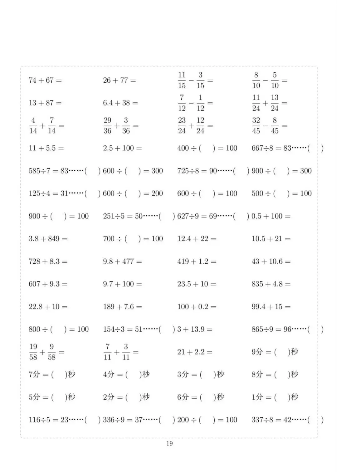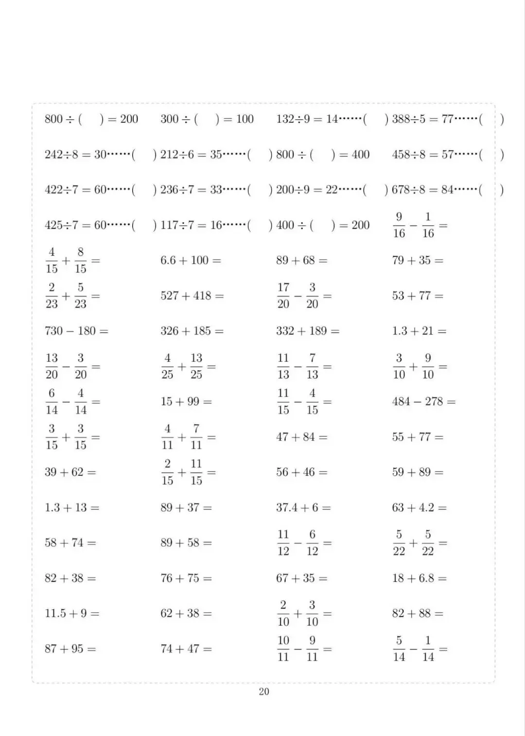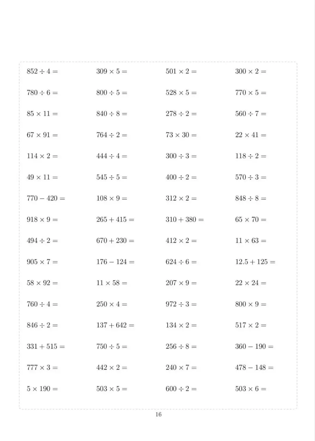 三年级下册数学计算专项练习,电子版可下载打印