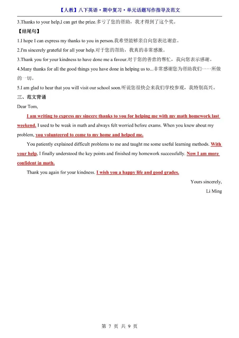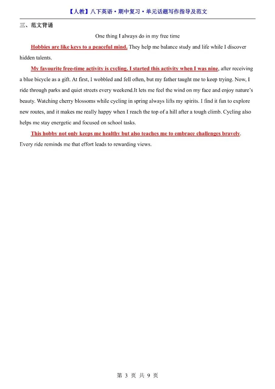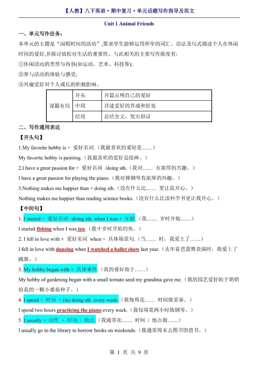 八下英语写作|单元话题范文+写法指导,背会直接拿高分