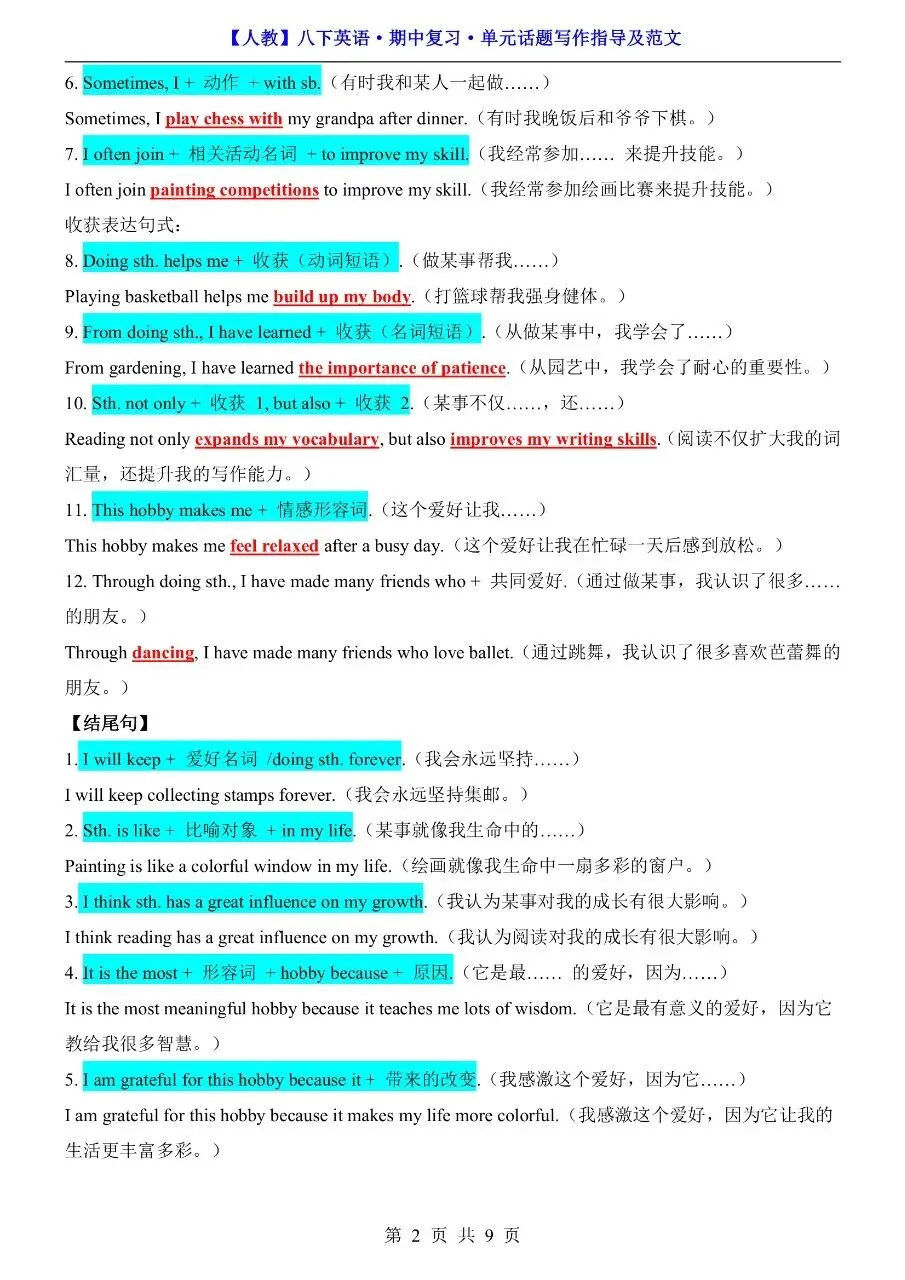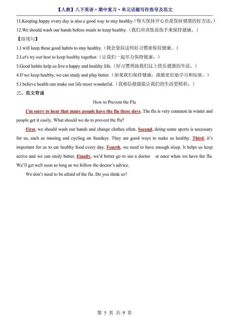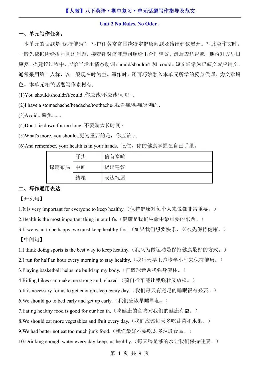 2026年最新版八年级下册英语期中单元话题写作指导及范文,有完整可打印,学霸学习好帮手,建议家长打印,学霸人手一份!