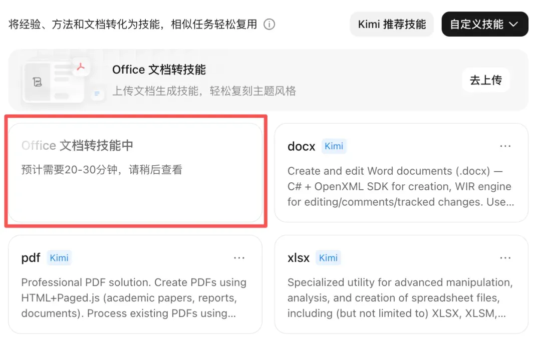 以前公司里最怕的就是 “老人走了,经验没留下”,现在好了,你把老人做的文档丢给 Kimi,直接把经验变成了公司的 AI 技能,永远都能用。