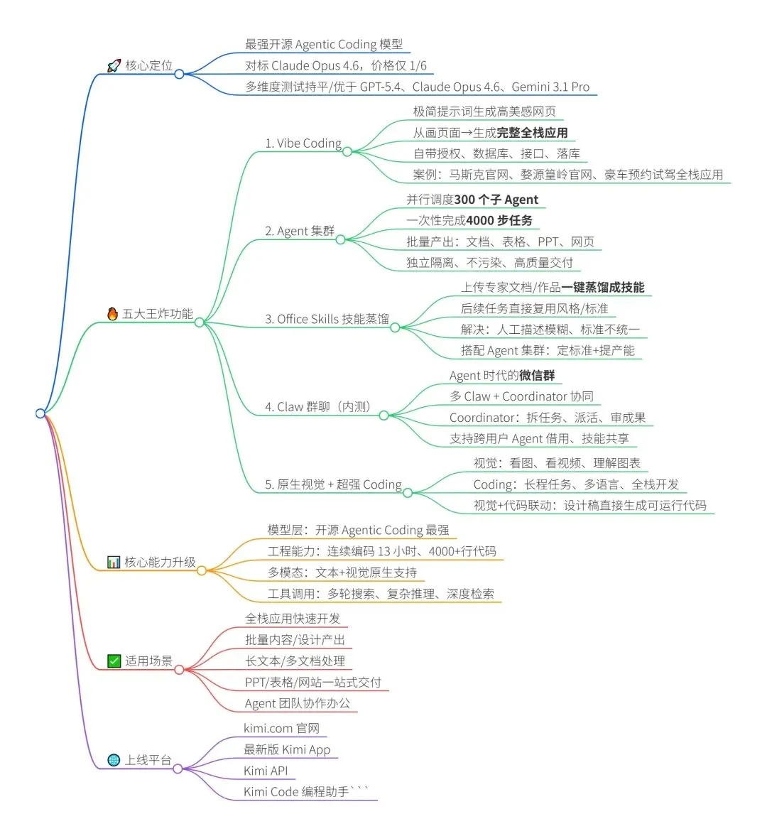 说白了,就是 Kimi 能把自己拆成 300 个 “AI 分身”,每个分身都有自己的专长:有的专门查资料,有的专门写文档,有的专门做表格,有的专门写代码,还有的专门负责检查大家的活有没有冲突。