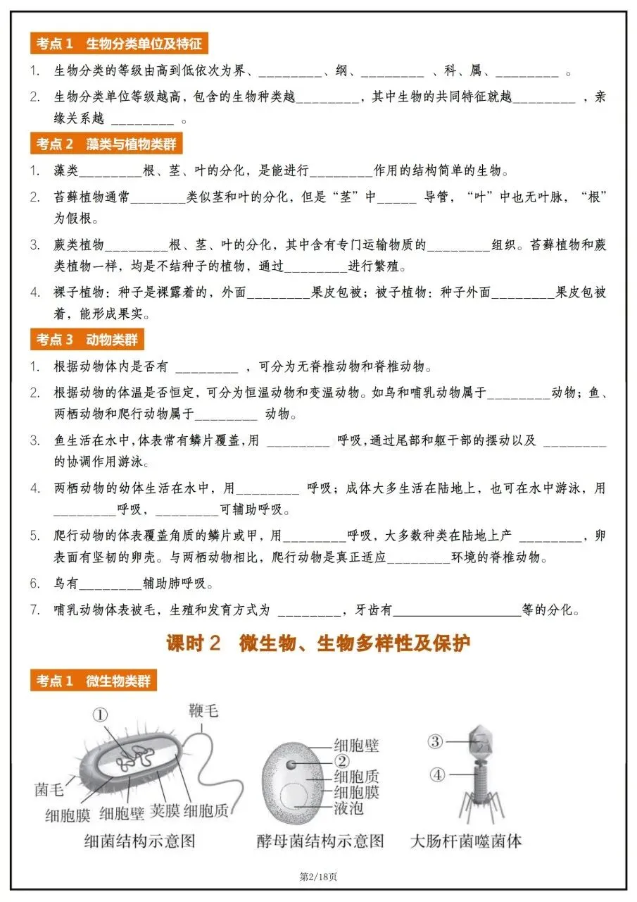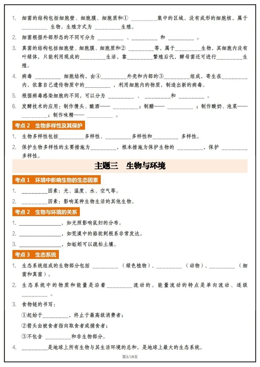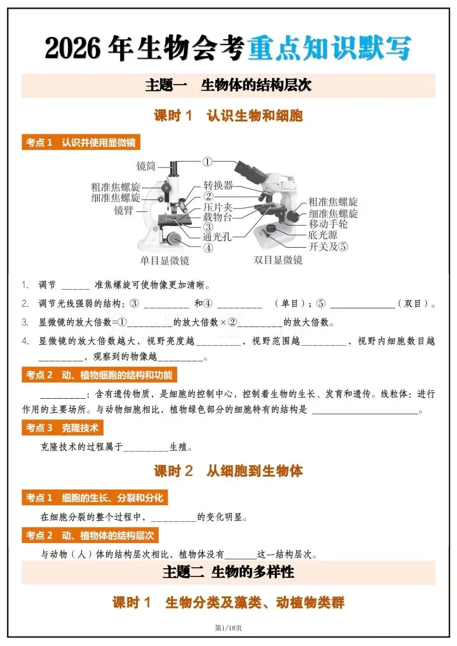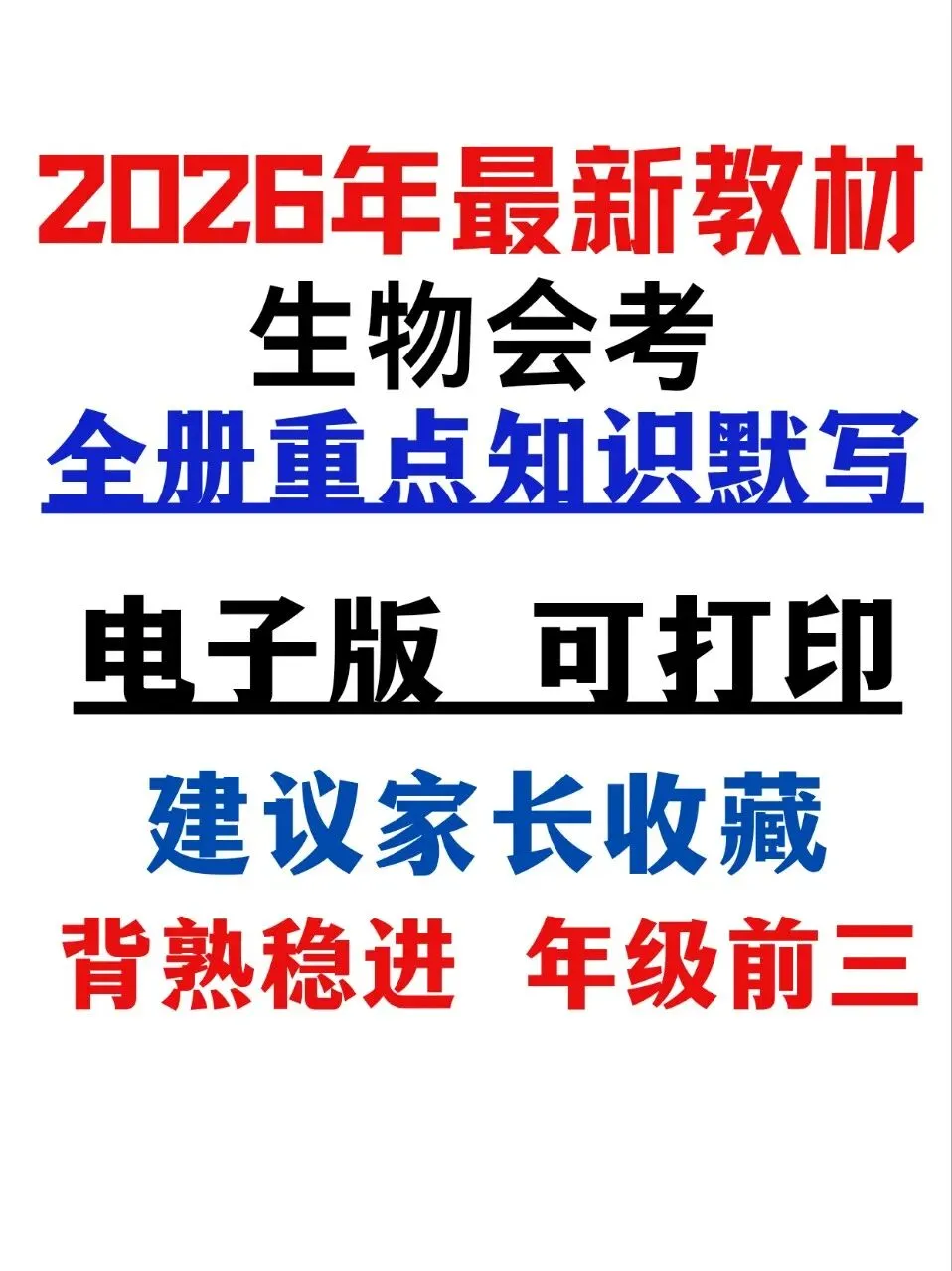 🔥2026生物会考必背!老师整理的默写清单,背完稳拿年级第一!