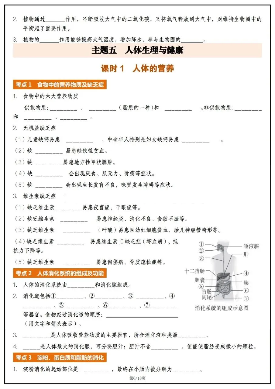 2026年最新版生物会考重点知识默写,有完整电子版可打印,学霸学习好帮手,建议家长打印,学霸人手一份!