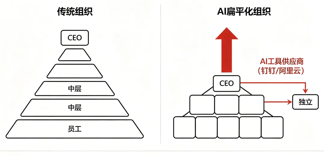 省流版:钉钉 CEO 陈航说「未来公司没有文档、没有中层」,方向判断大体不错,但结论过于绝对。他绕开了权力、就业、韧性和责任四个核心问题——而这四个问题,恰好也不在阿里云的产品说明书里。