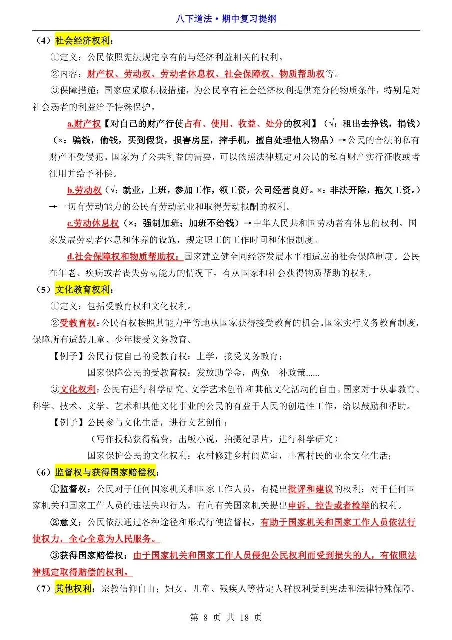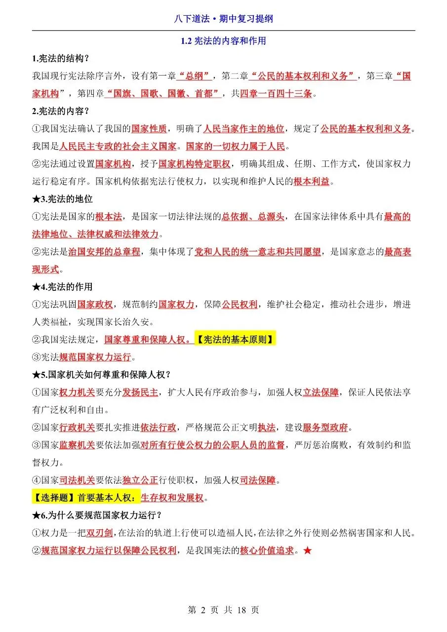 2026年最新版八年级下册道法期中复习知识点提纲,有完整电子版可打印,学霸学习好帮手,建议家长打印,学霸人手一份!