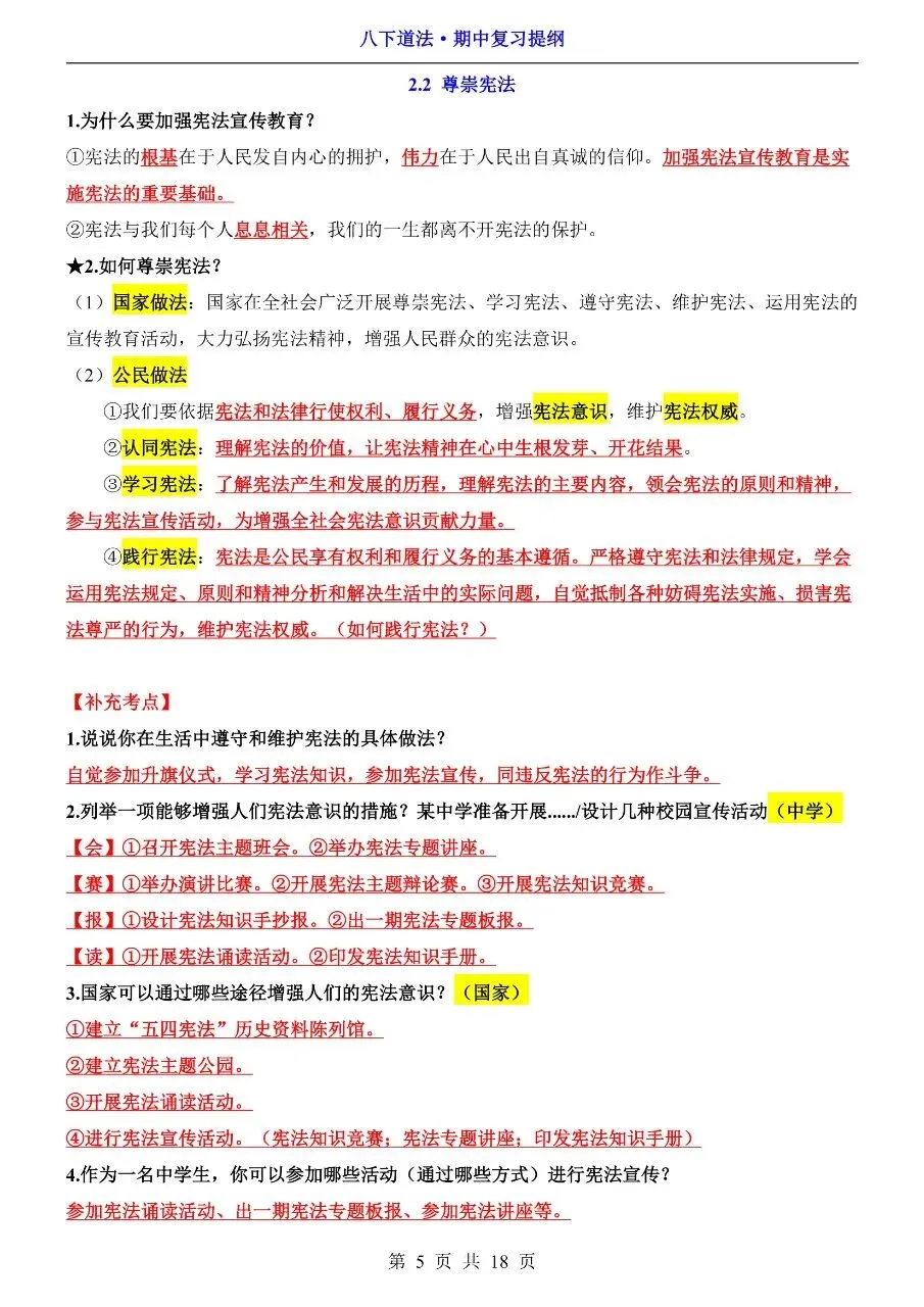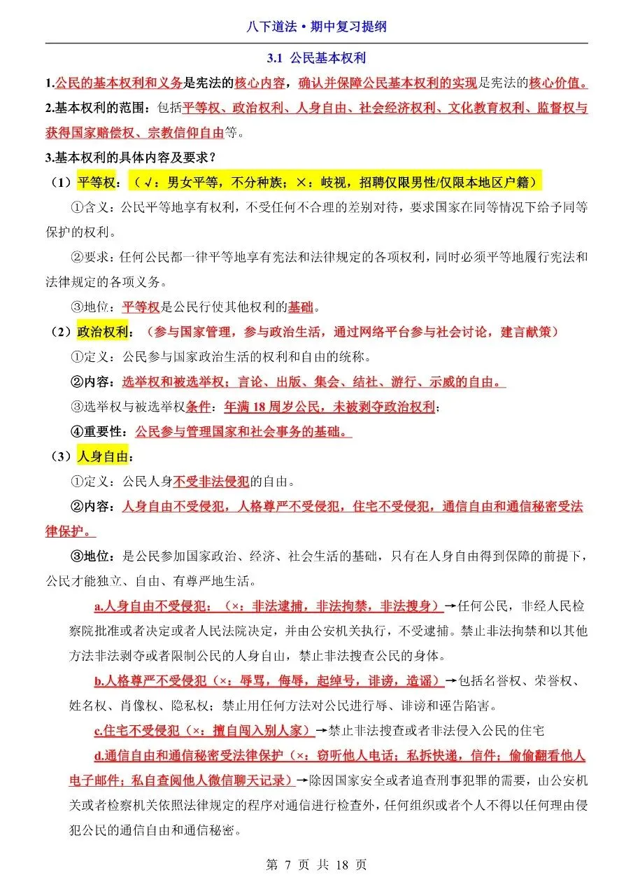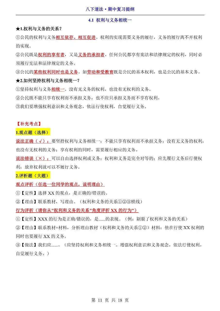 八下道法期中冲刺|背熟这份核心提纲,轻松稳拿高分