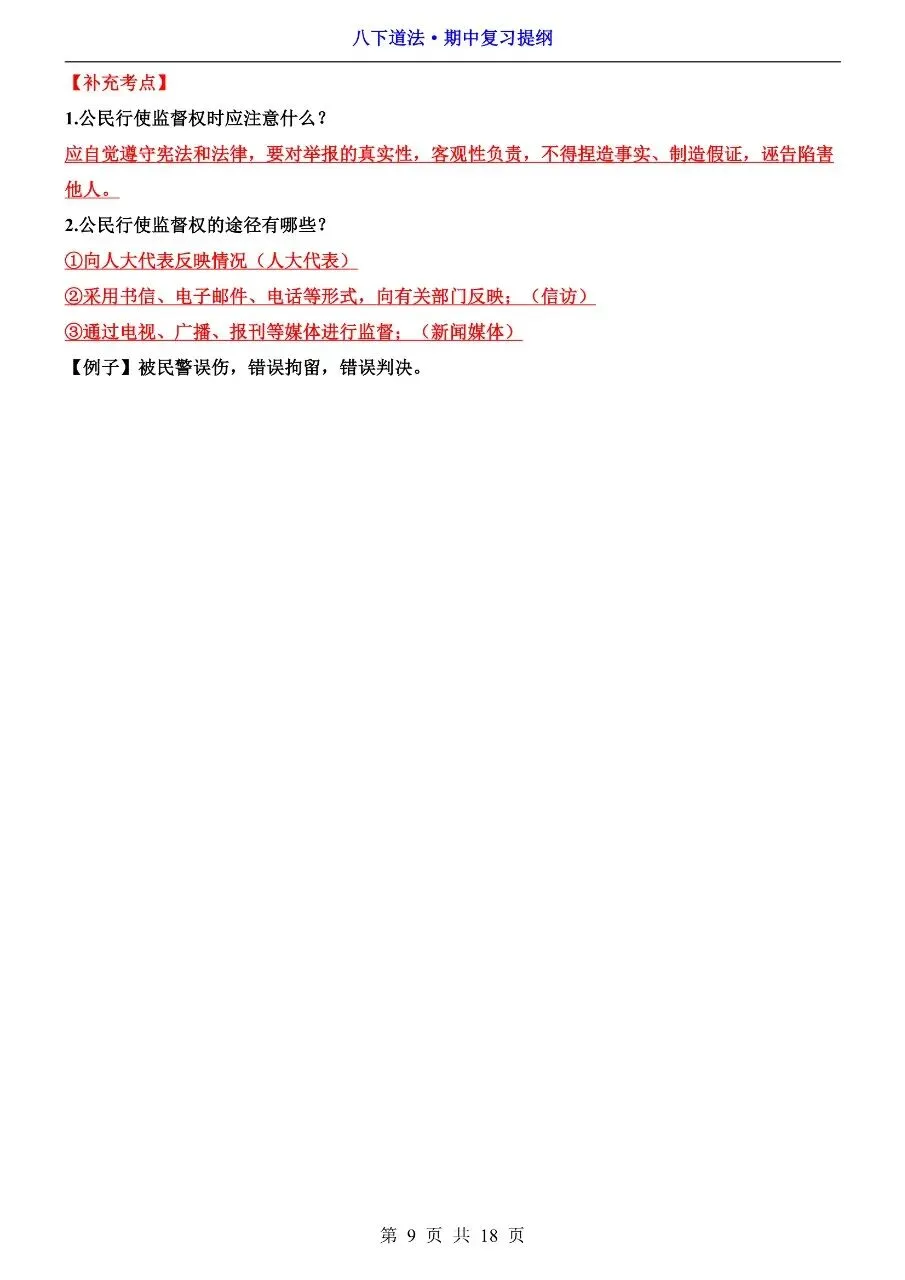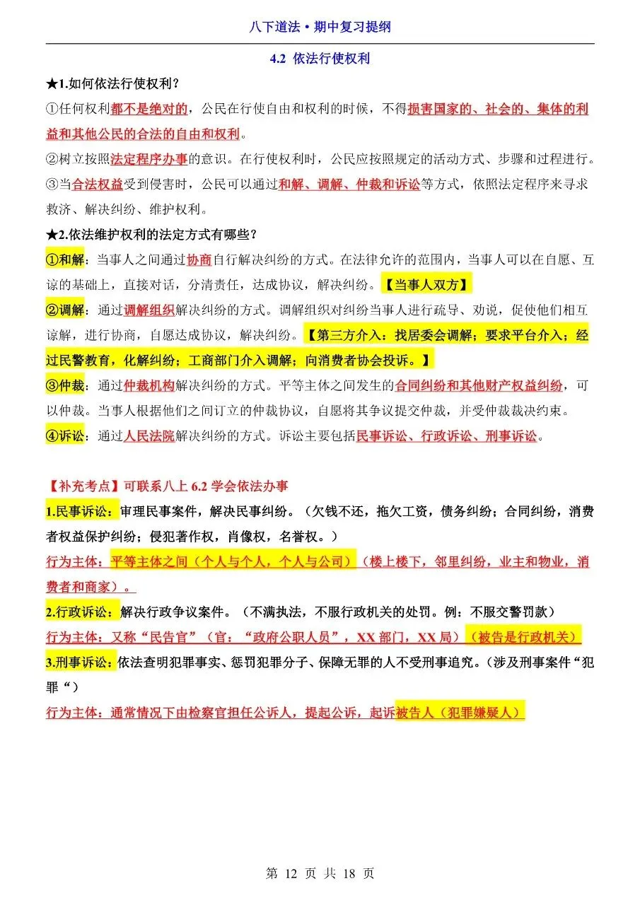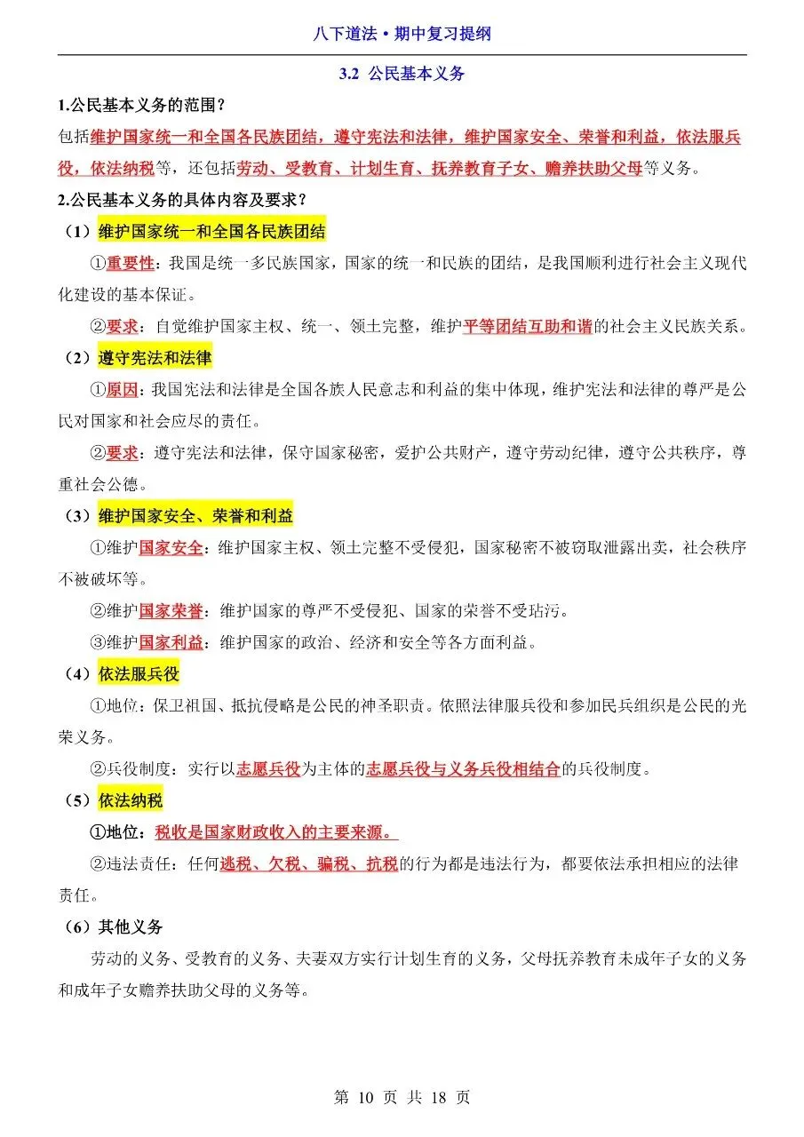 八下道法期中冲刺|背熟这份核心提纲,轻松稳拿高分