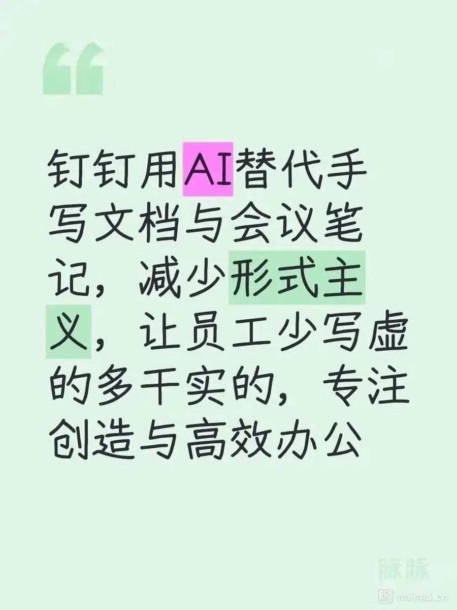 在他看来,大量的文档写作,本质上是无效劳动。AI可以在几分钟内完成机械的信息整理、纪要生成、数据汇总,把人从排版、凑字数、流水账记录里彻底解放出来,让员工把时间还给真正的干活和思考——AI负责记录,人负责创造,这才是办公该有的样子。