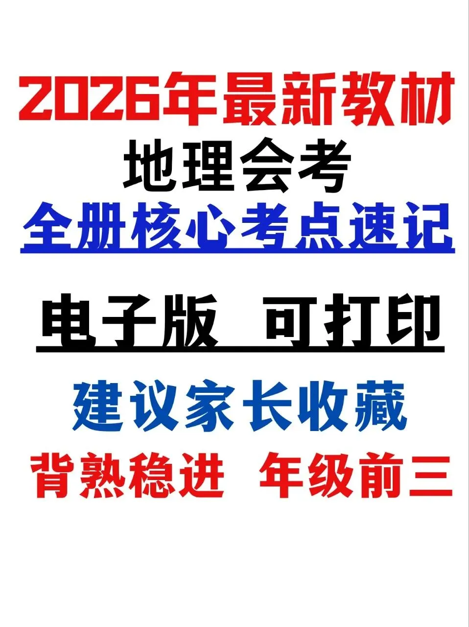 帮我写作,帮我如何利用老师整理好2026年最新教材地理会考核心知识点速记,考前预习、冲刺复习都能用,堪称备考好帮手。很多同学地理丢分,不是不会,而是知识点太散、记不牢、不会用。这份核心速记,把高频考点、易错点、必背图都梳理清楚,不用再啃厚课本,背一条就少丢一分。
