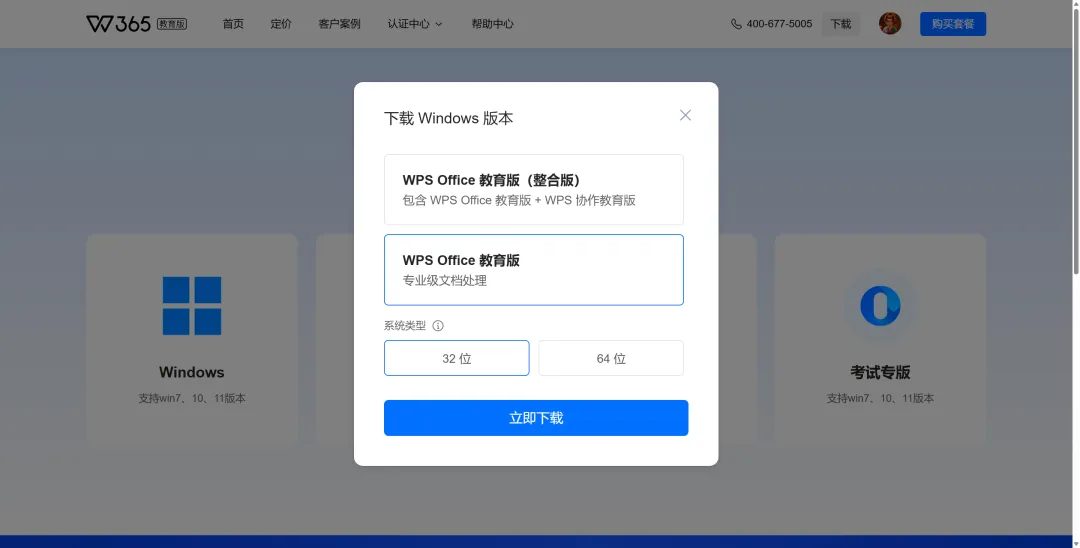 或学校正版化软件平台,下载WPS365教育版安装包。