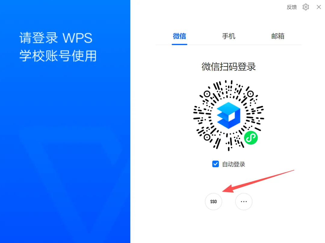 安装完成后启动WPS,点击页面右上角「登录」按钮,选择SSO(单点登录)方式进行身份验证。