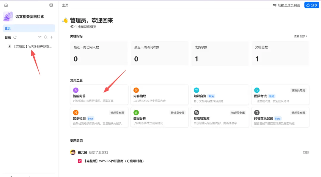 此时通过智能问答即可对现有知识库内的文档内容进行检索、提问、总结归纳等等。