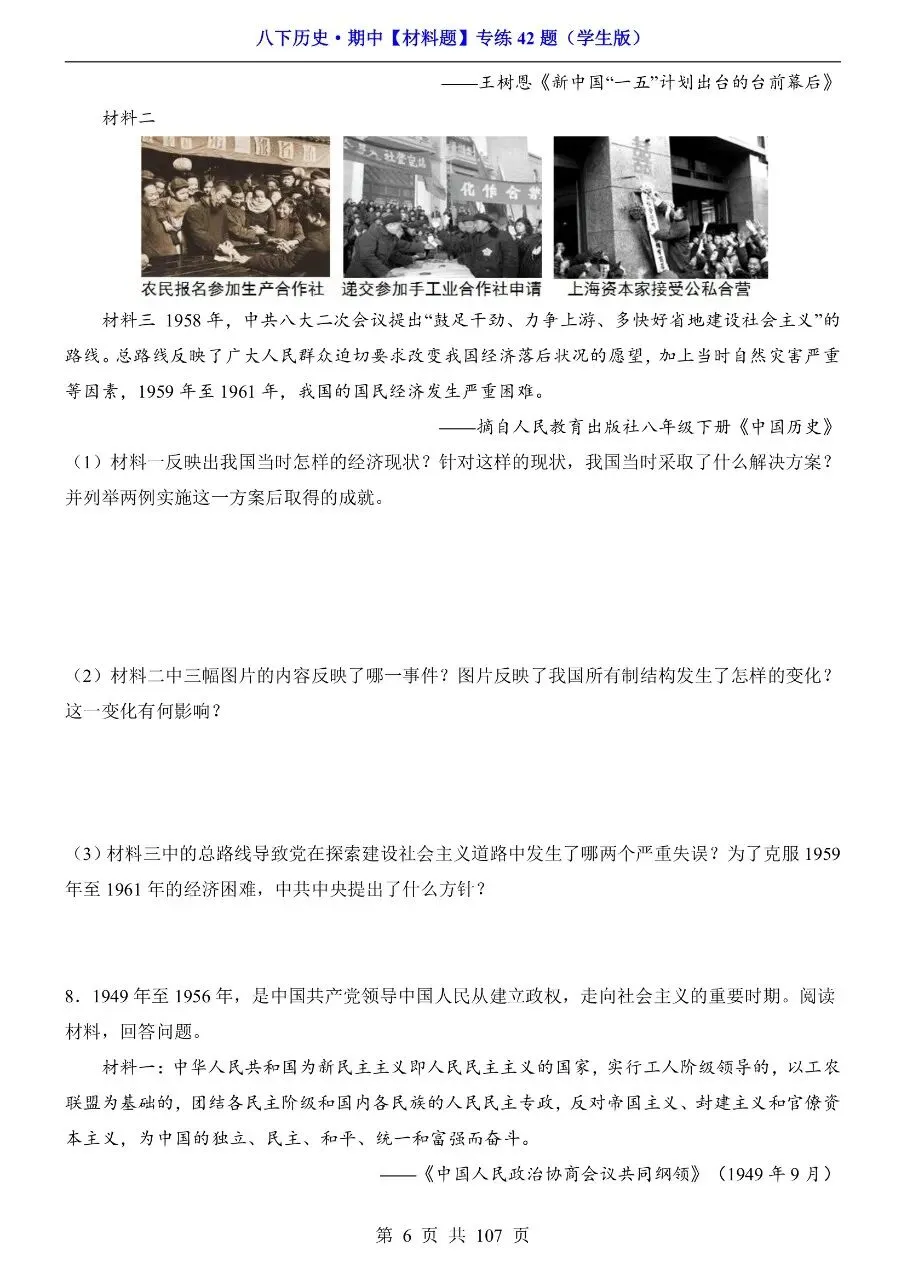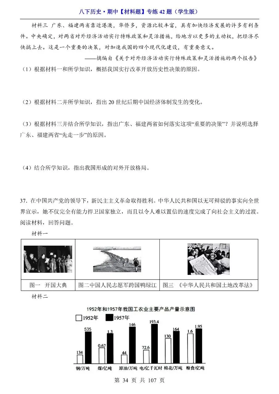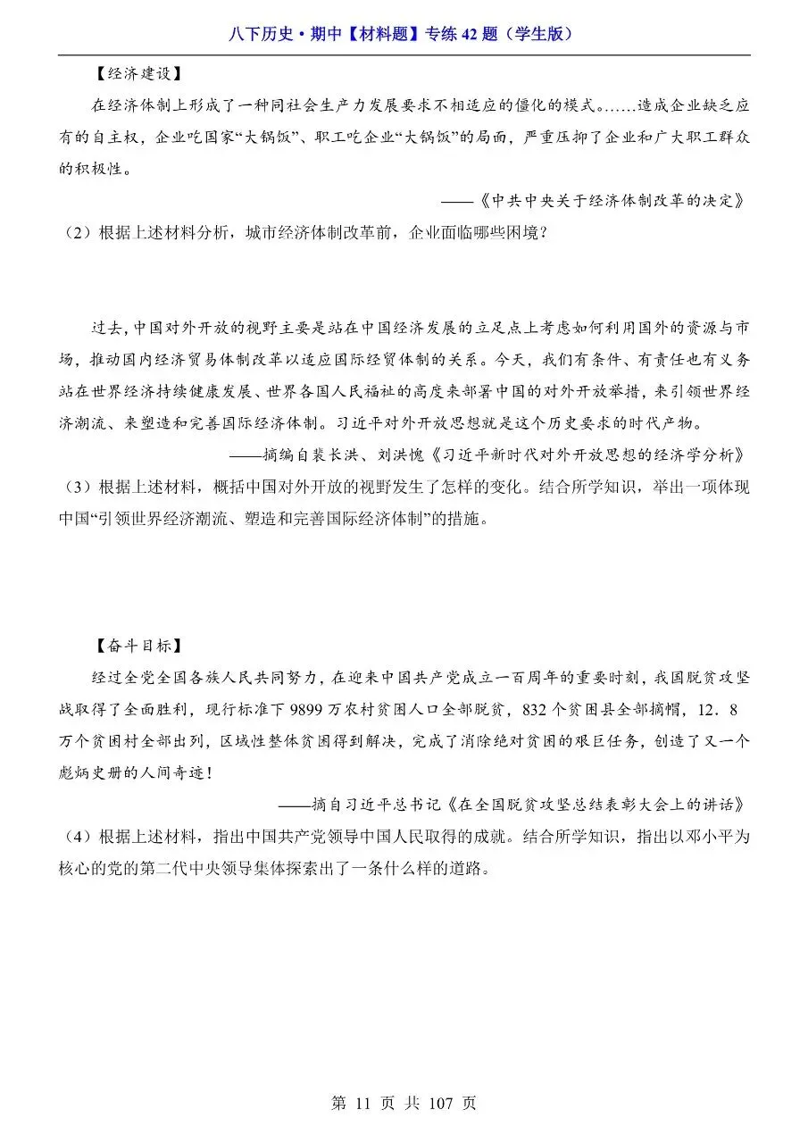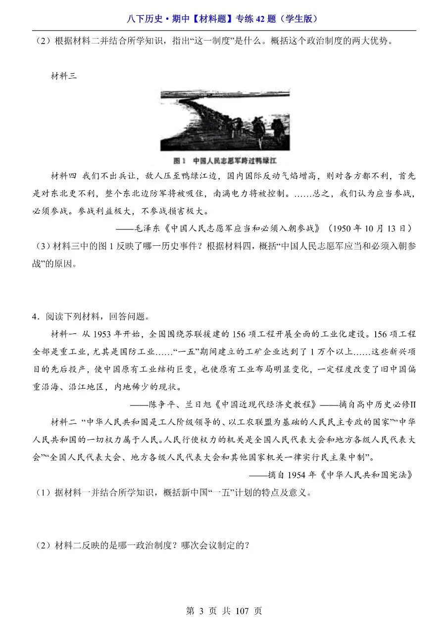 2026年最新版八年级下册历史期中复习材料题专练42道,有完整可打印,学霸学习好帮手,建议家长打印,学霸人手一份!