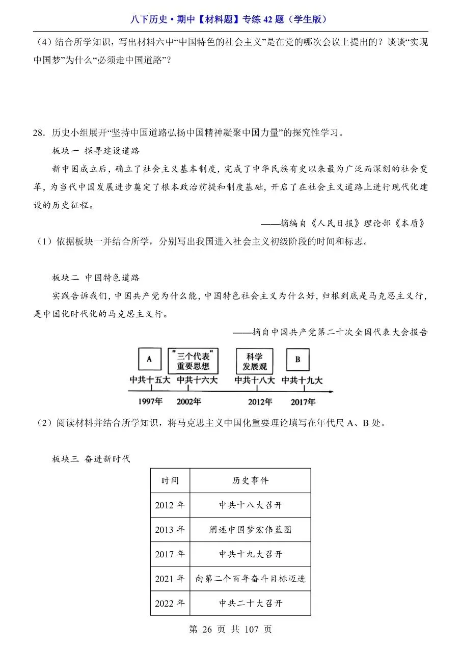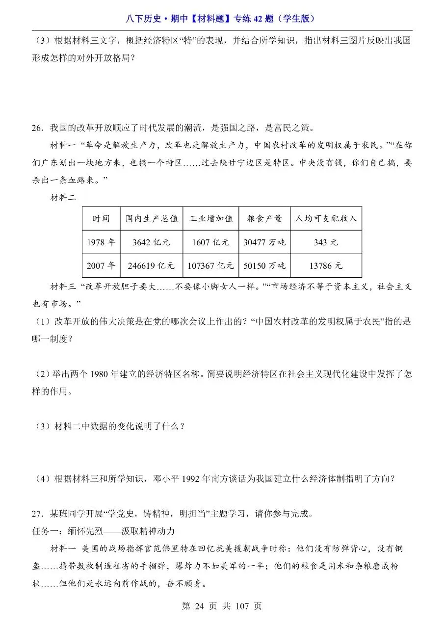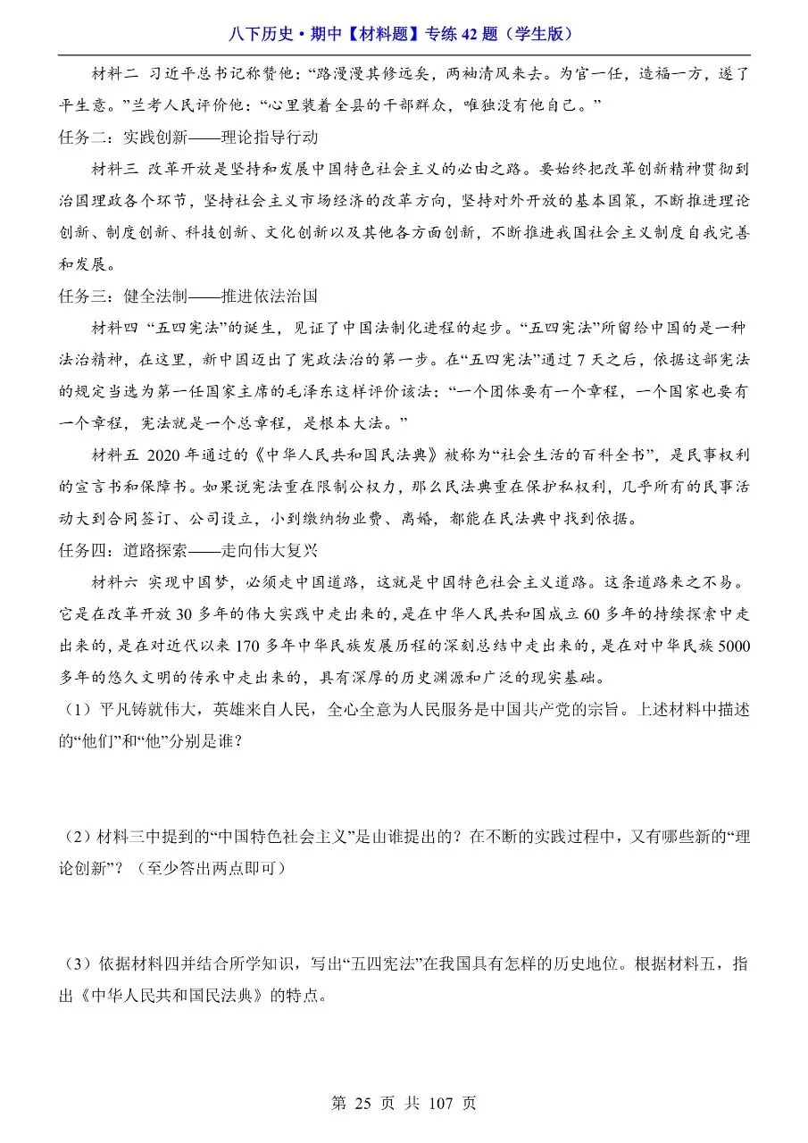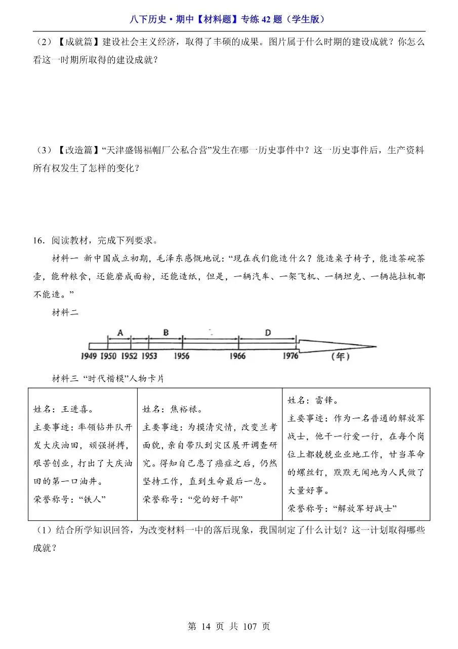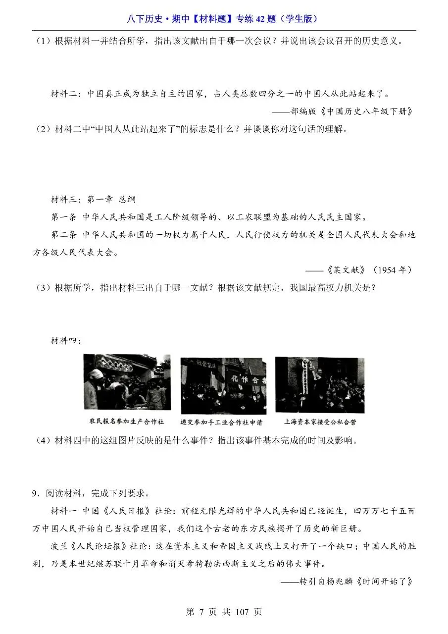 2026年最新版八年级下册历史期中复习材料题专练42道,有完整可打印,学霸学习好帮手,建议家长打印,学霸人手一份!