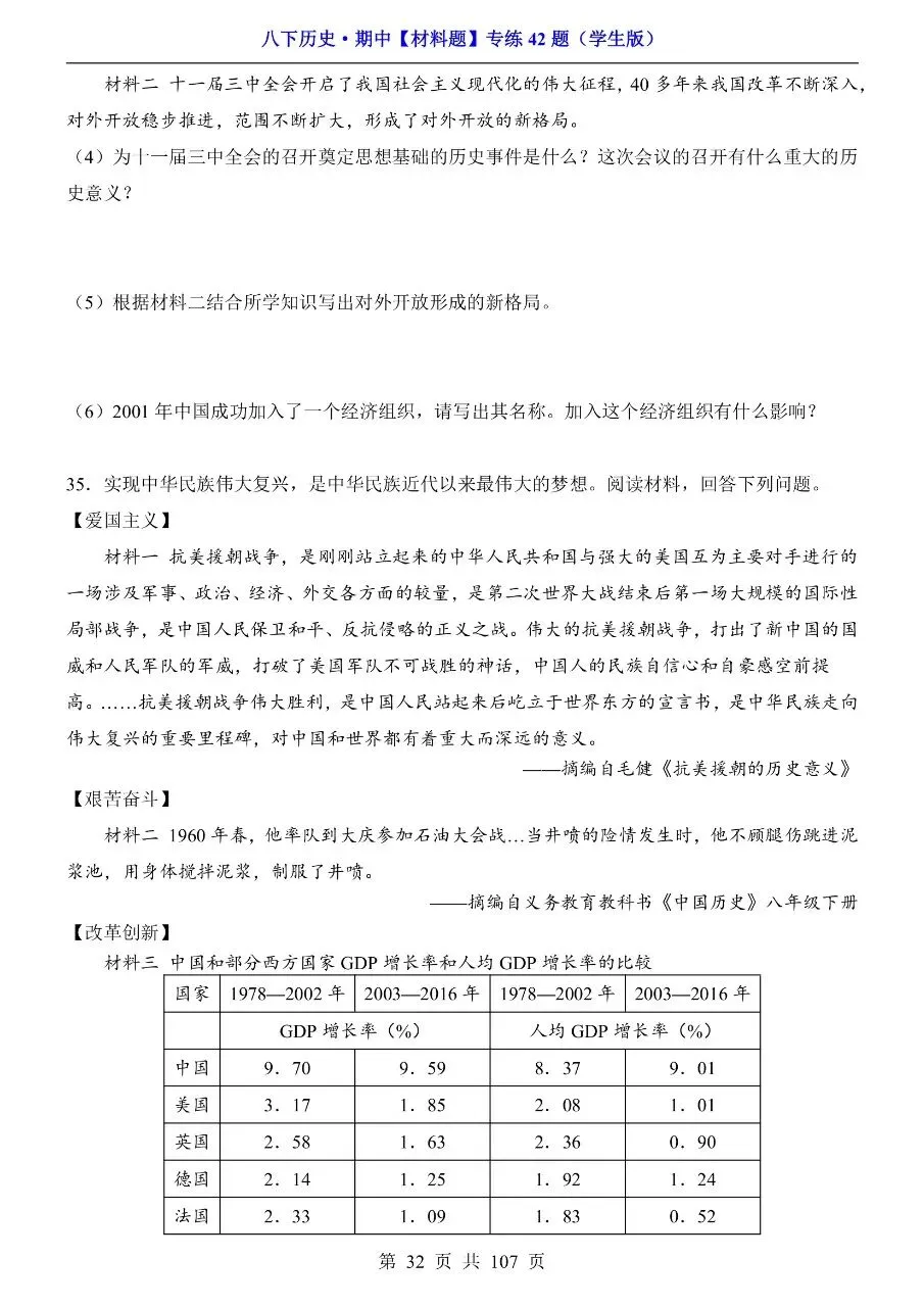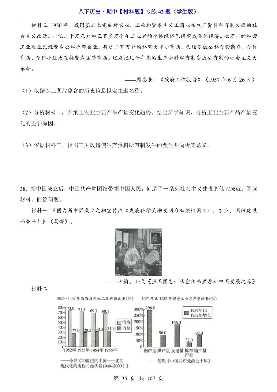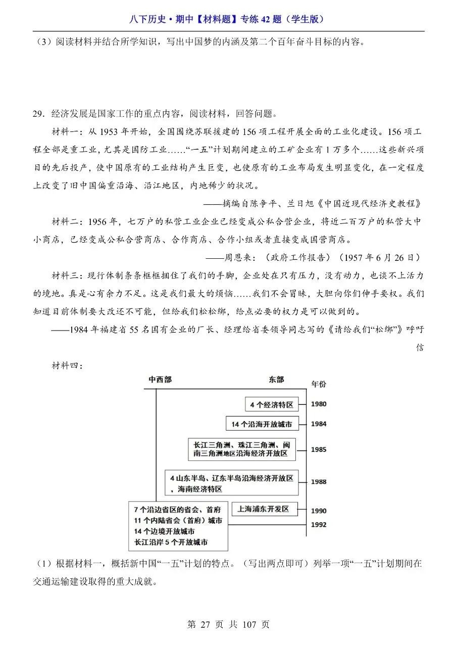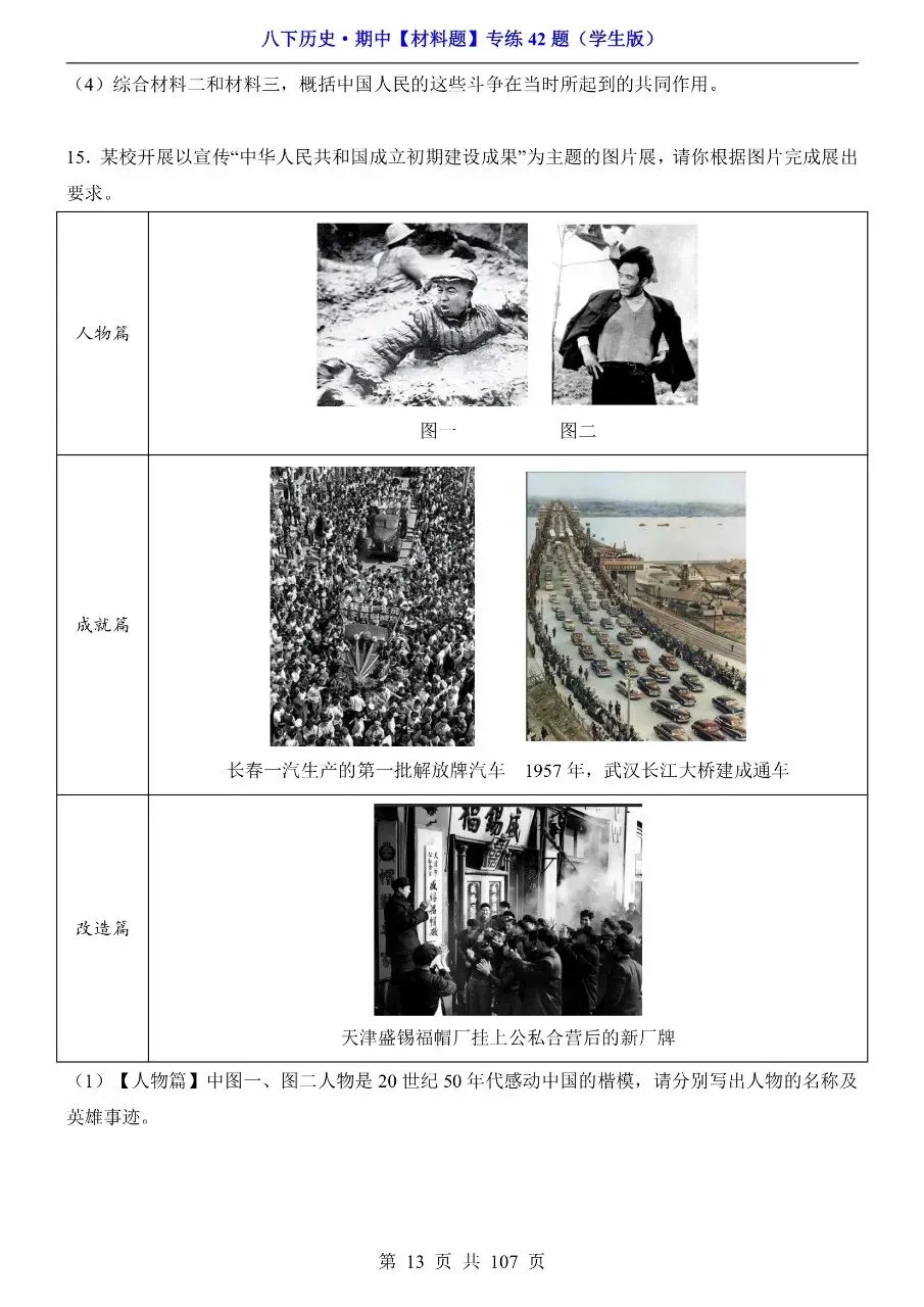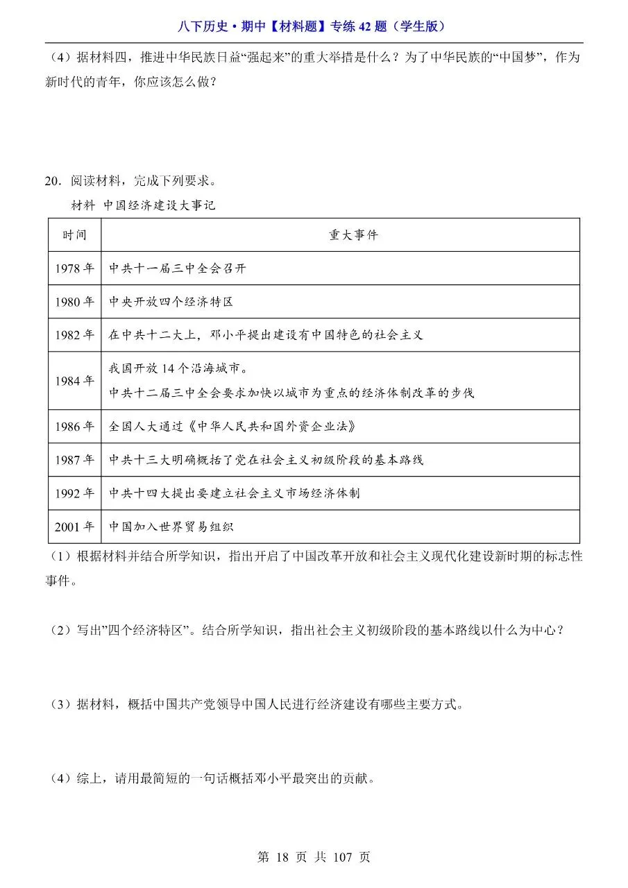 2026年最新版八年级下册历史期中复习材料题专练42道,有完整可打印,学霸学习好帮手,建议家长打印,学霸人手一份!