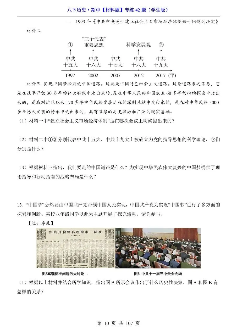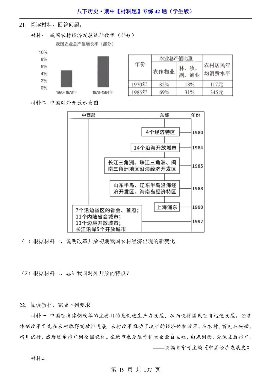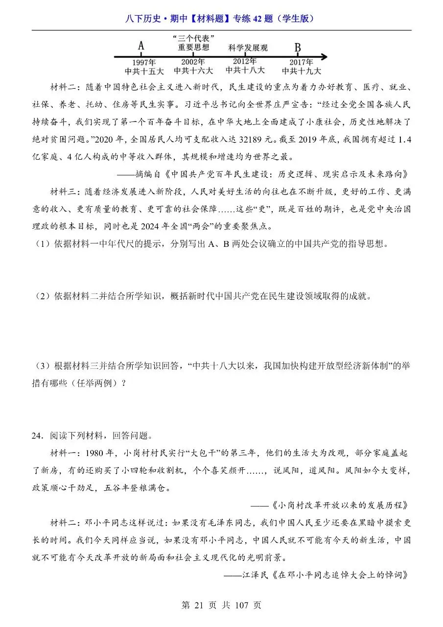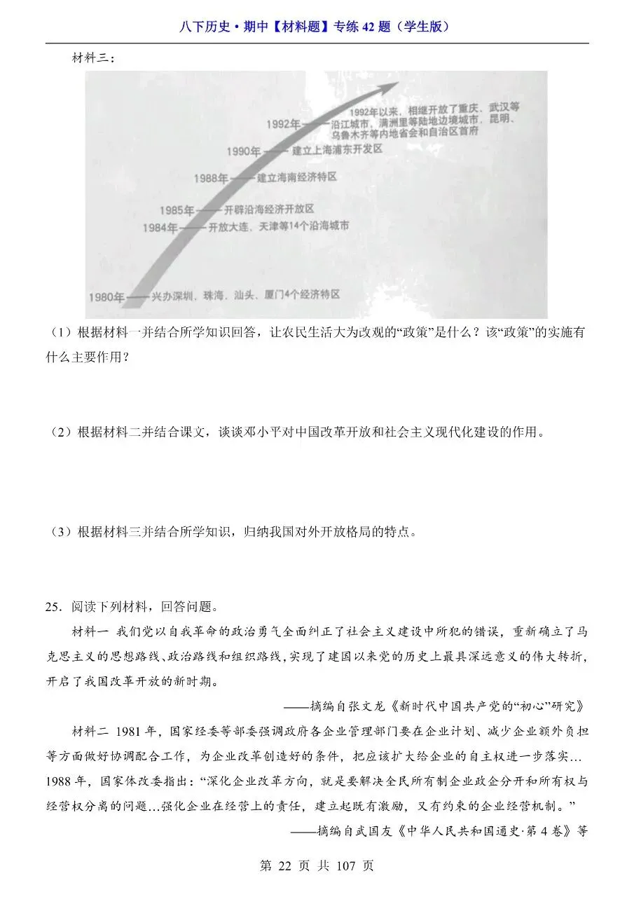 2026年最新版八年级下册历史期中复习材料题专练42道,有完整可打印,学霸学习好帮手,建议家长打印,学霸人手一份!