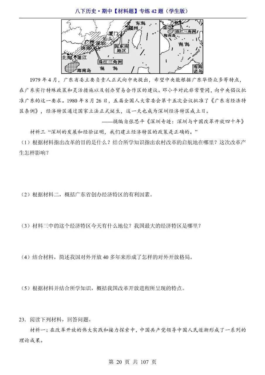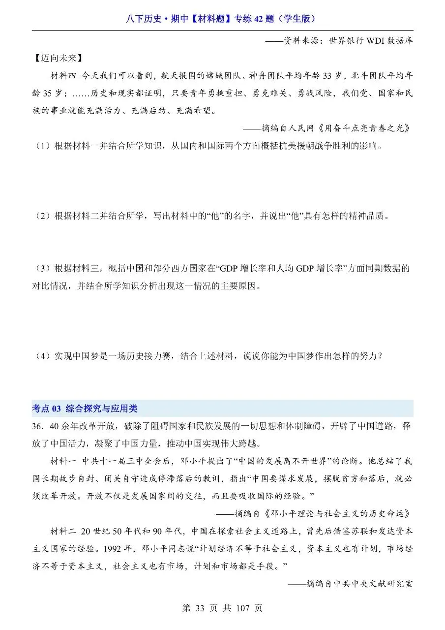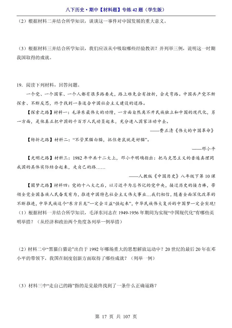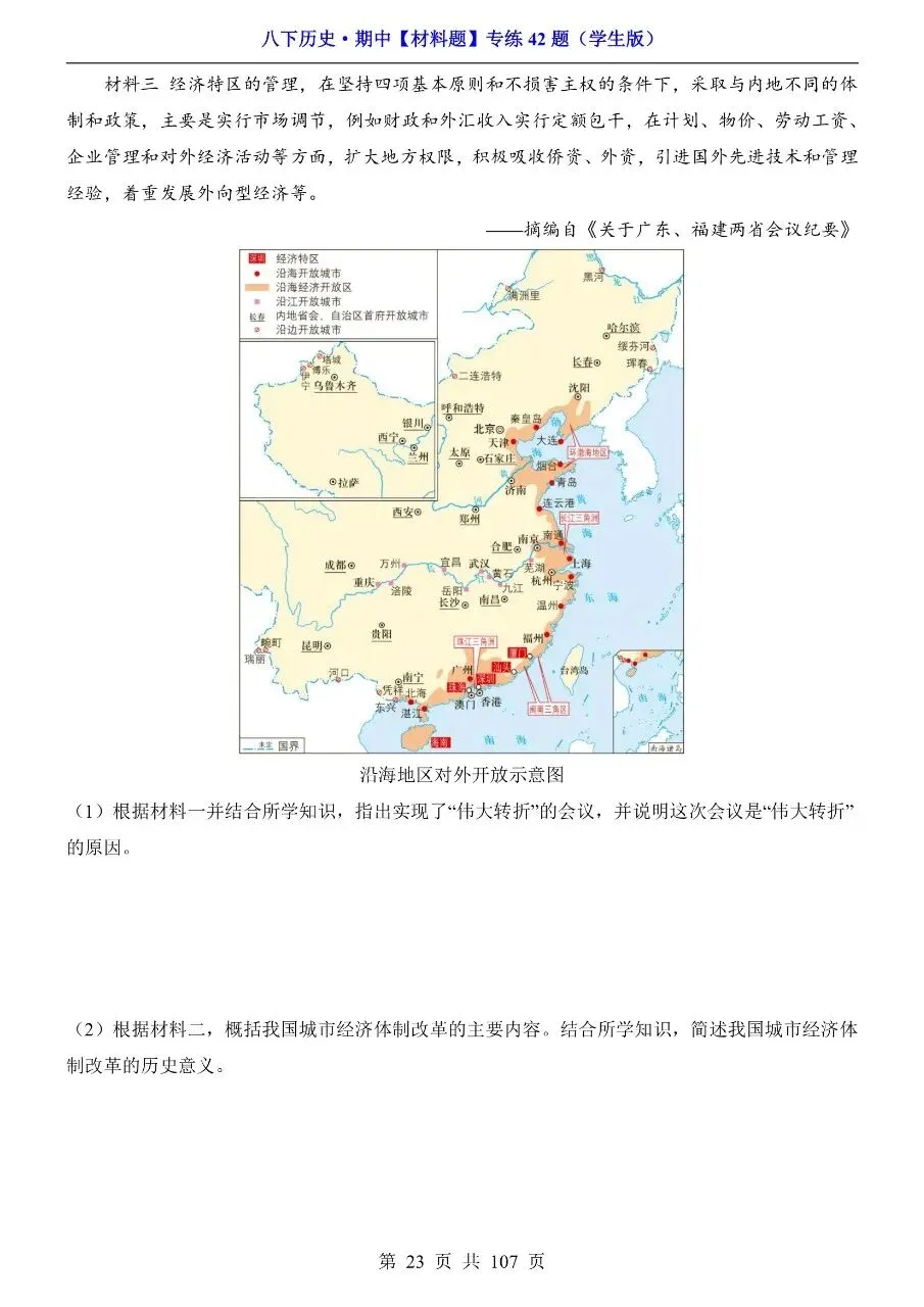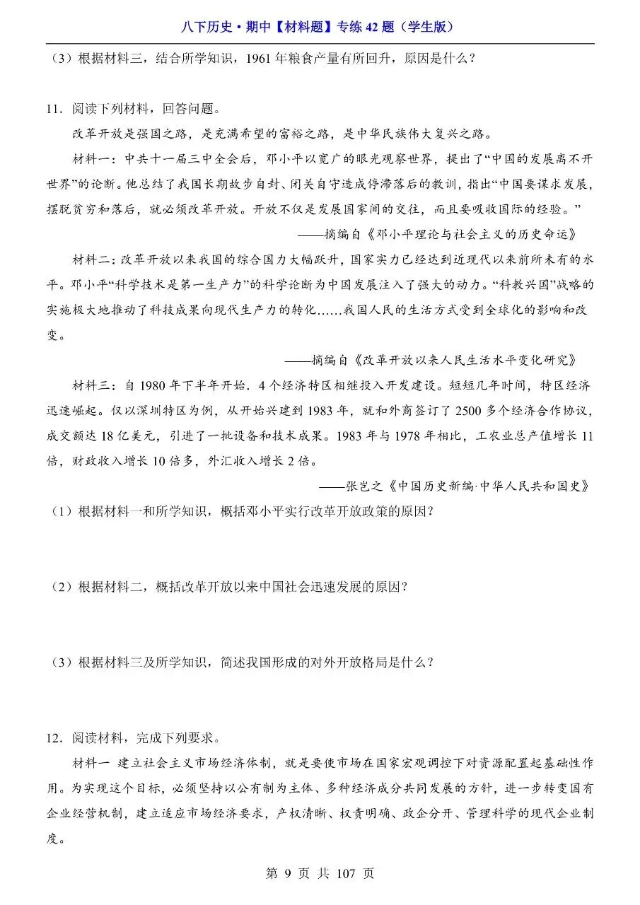 2026年最新版八年级下册历史期中复习材料题专练42道,有完整可打印,学霸学习好帮手,建议家长打印,学霸人手一份!