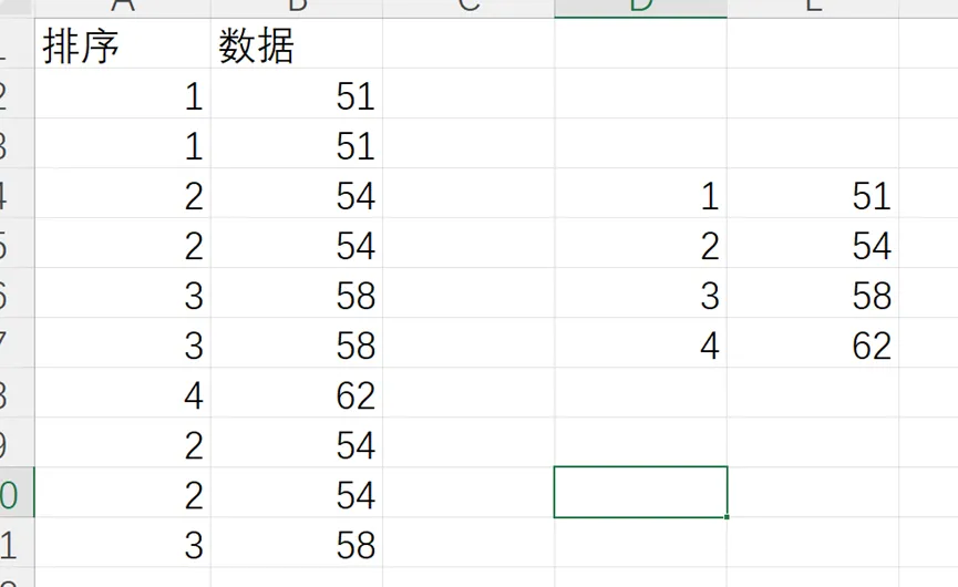 我们想要把重复的数据也标上相同的排序,可以先把整个数组排序后再去重