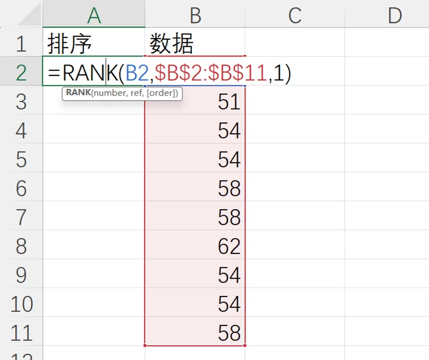 Rank函数在排序的过程中遇到相同的数据,虽然能显示相同的排名,但是当数字变大的时候就会把排名自动挤掉一个。