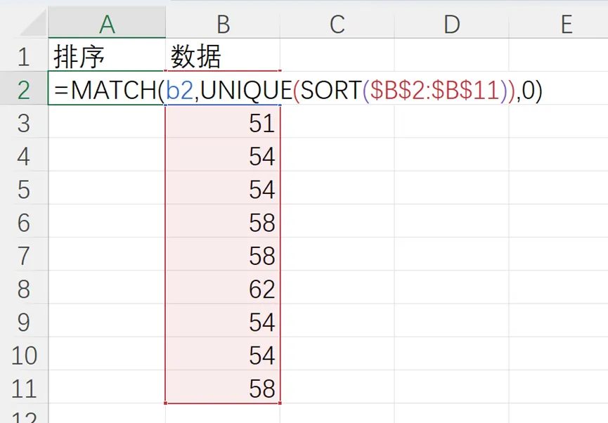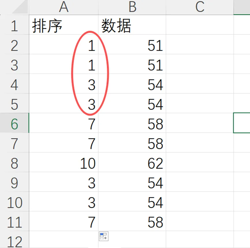 比如说,21、22、22、23,我们期望的排名是1、2、2、3。但是rank函数会把第三个排序挤掉,因为第三个位置被22占据了。就变成1、2、2、4