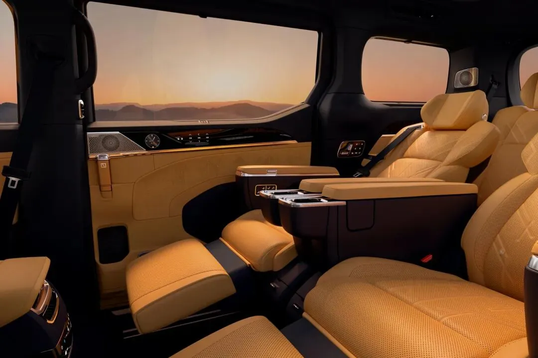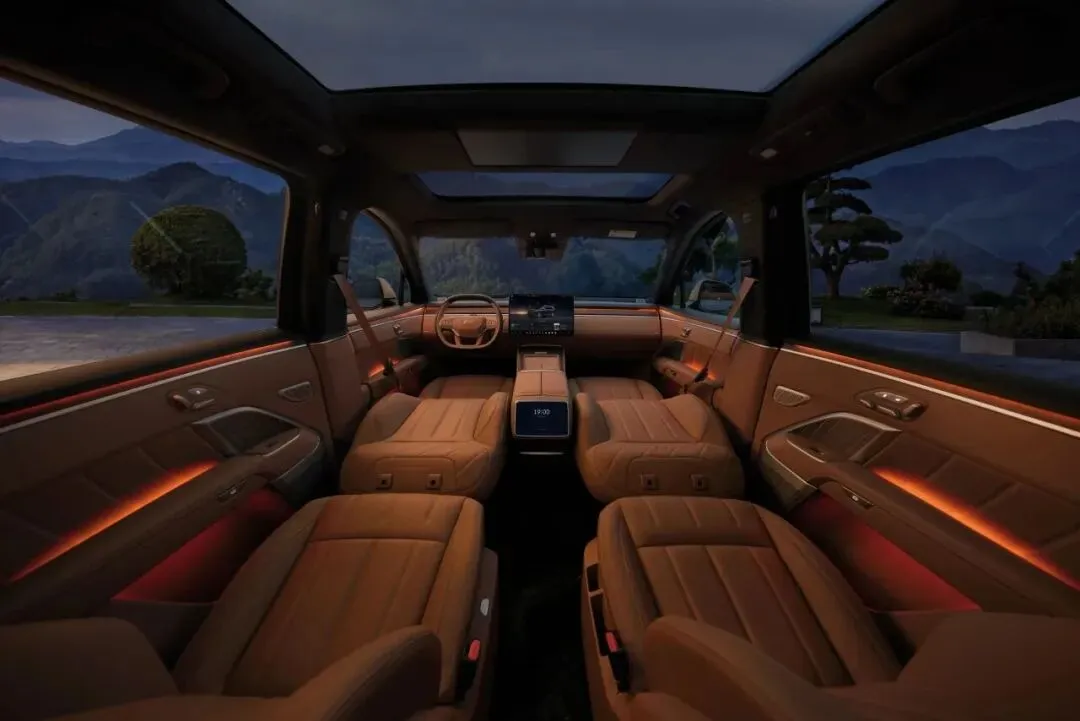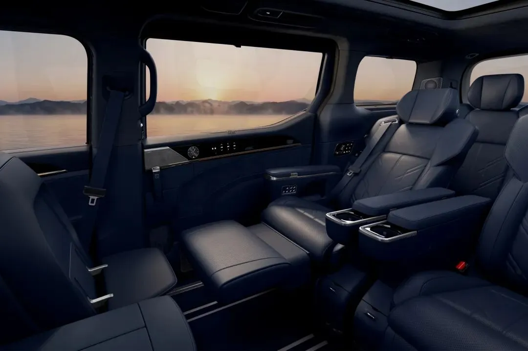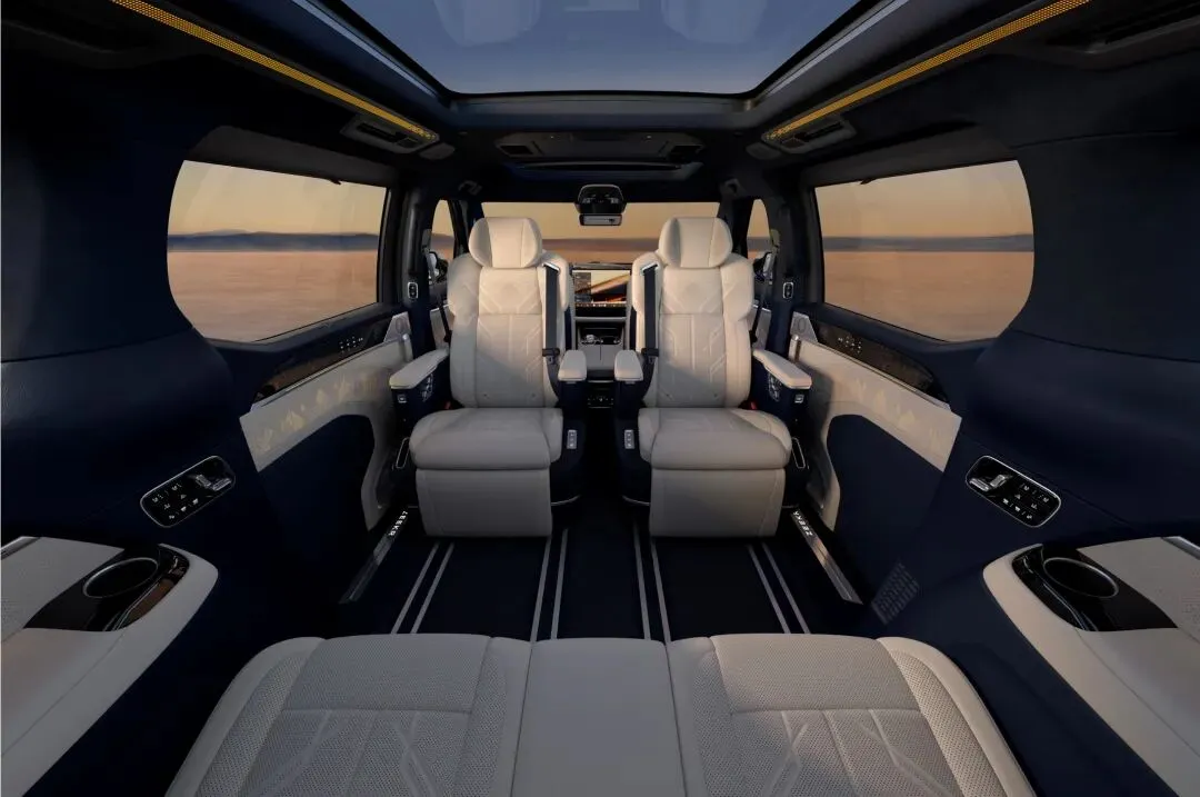 配置提升:全系标配空气悬架、Nappa真皮内饰、智驾小蓝灯,Ultra+版新增二排零重力座椅和电动踏板;