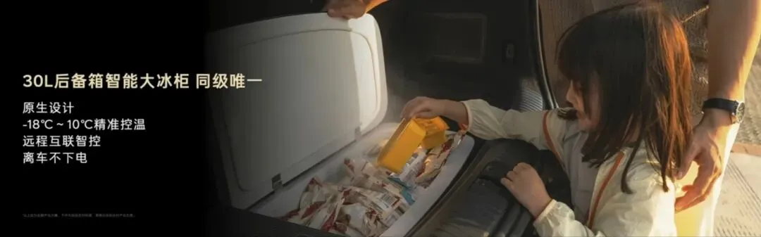 空间&实用:新增后备箱30L隐藏式冰柜,-18℃~10℃温控,离车不下电;三排空间优化,满足“6人10箱”装载需求;
